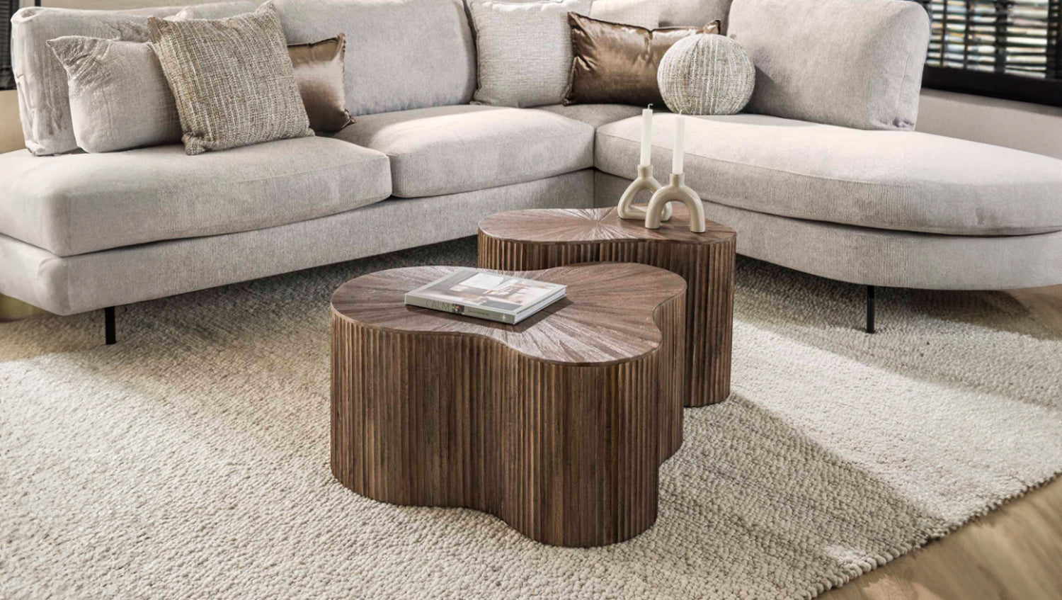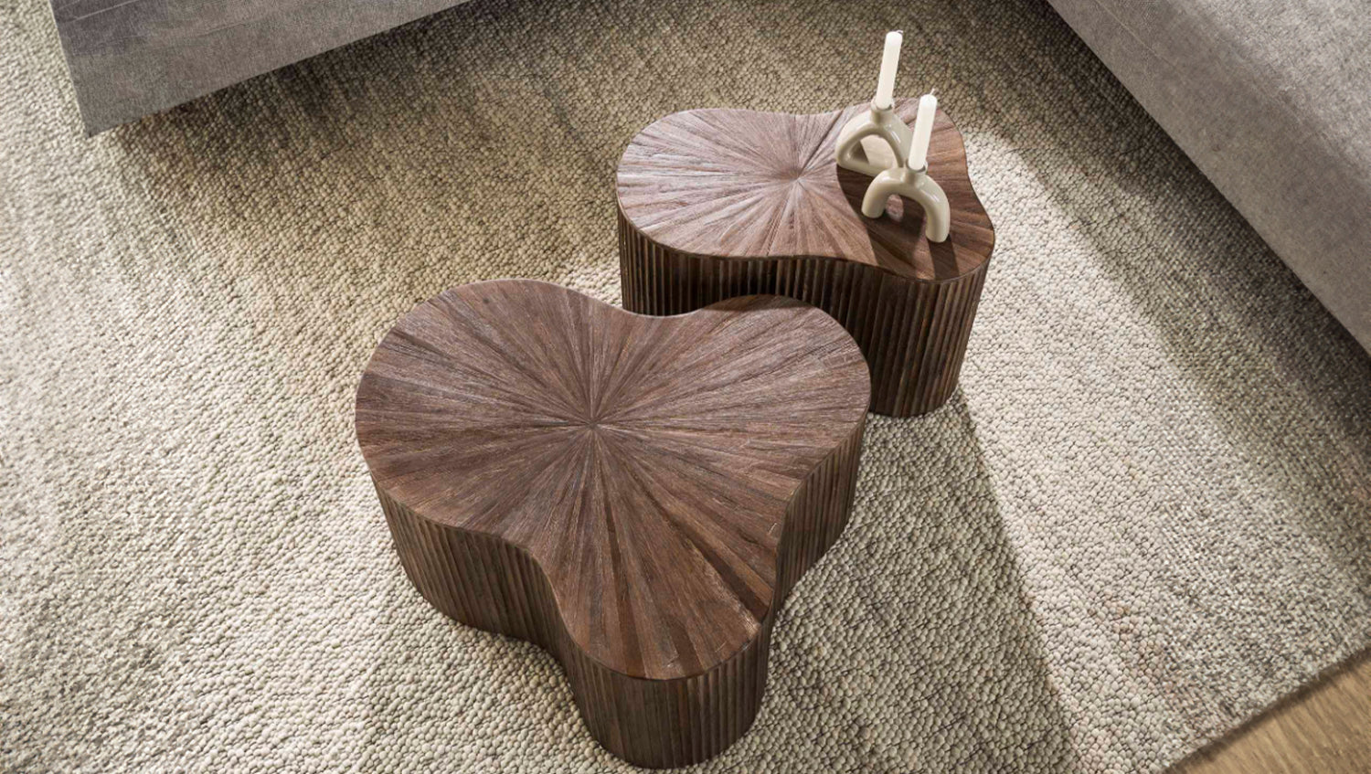 KAWOLA INKA juego de mesa de centro de 2 piezas en forma de trébol de teca marrón
