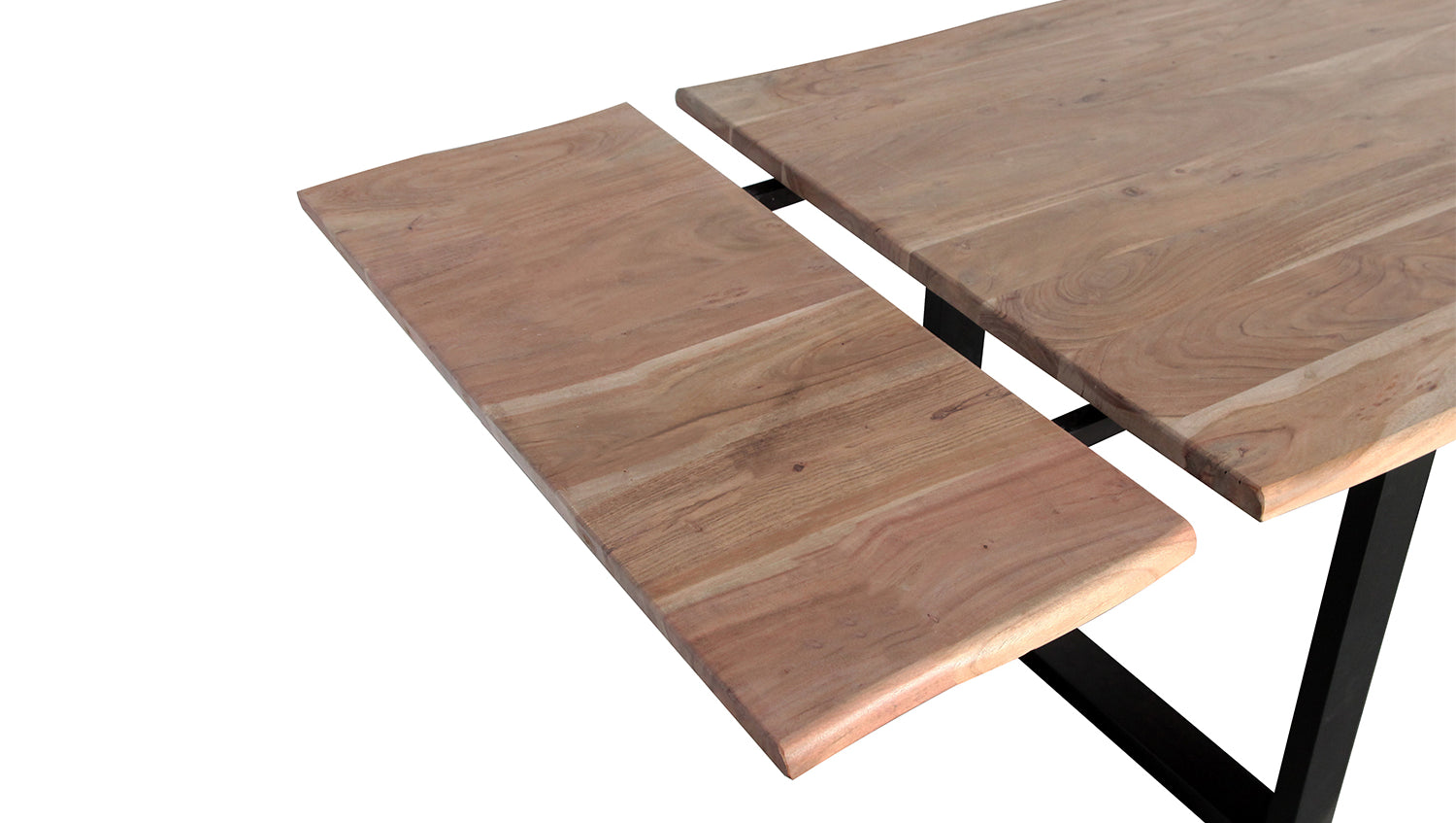 La Mesa de comedor LORE de KAWOLA combina la belleza natural con un diseño atemporal, crea un ambiente acogedor en el comedor y añade elegancia rústica a su habitación. El llamativo borde de árbol a lo largo del tablero confiere a cada mesa un aspecto único. Con una longitud de 140 cm (220 cm con Tableros extensibles) y una robusta base de patín de hierro negro, la mesa ofrece mucho espacio y una moderna estabilidad. El lacado mate transparente protege la superficie de la madera y resalta las vetas individuales, al tiempo que proporciona una superficie agradablemente lisa. La mesa LORE de KAWOLA proporciona a su hogar un ambiente cálido y acogedor. NOTA IMPORTANTE Esta mesa es un producto natural. Cada mesa es única. Desviaciones dimensionales, nudos y grietas así como pequeños desniveles son típicos del producto y no son motivo de reclamación. Las grietas existentes se rellenan con piezas del mismo tipo de madera durante la producción. Las diferencias de color resultantes tampoco son motivo de reclamación.