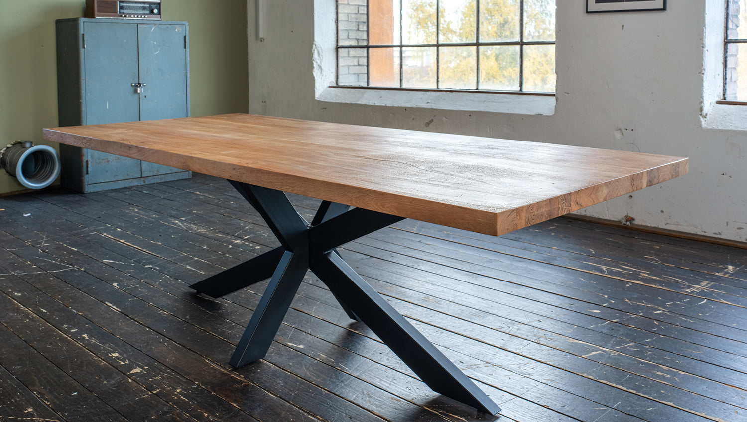 La mesa de madera maciza SELVA de KAWOLA combina un diseño atemporal con materiales naturales. La superficie del tablero de madera maciza de acacia está cepillada y es de color roble, lo que acentúa a la perfección las vetas naturales de la madera. El borde recto acentúa el diseño moderno y crea un aspecto armonioso y despejado, ideal para comedores contemporáneos. Disponible en longitudes de 200 cm, 220 cm, 240 cm, 260 cm, 280 cm y 300 cm, esta mesa de madera maciza ofrece mucho espacio para veladas sociables o cenas elegantes. El bastidor de base soldado rústico de diseño industrial, pintado de negro y con una llamativa base de araña, aporta a la mesa un toque moderno e industrial. La Mesa de comedor SELVA no es sólo un mueble, sino una declaración de intenciones de alta calidad y diseño moderno. Perfecta para quienes desean combinar naturalidad y urbanidad en su hogar. Lleve un trozo de naturaleza a su comedor.