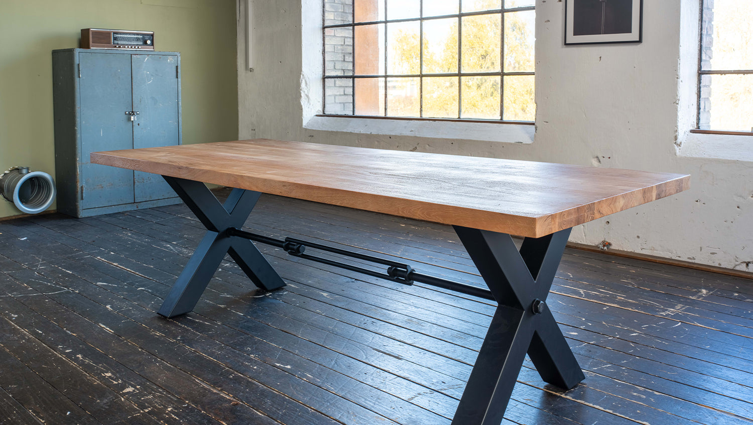 La mesa de madera maciza PALO de KAWOLA convence por su claro lenguaje de diseño y sus materiales de alta calidad. La superficie del tablero de madera maciza de acacia está cepillada y es de color roble, lo que acentúa a la perfección el veteado natural de la madera. El borde recto acentúa el diseño moderno y crea un aspecto armonioso y despejado, ideal para comedores contemporáneos. Disponible en longitudes de 200 cm, 220 cm, 240 cm, 260 cm, 280 cm y 300 cm, la mesa ofrece espacio suficiente para comidas acogedoras o reuniones sociales. El bastidor de base rústico soldado de diseño industrial, pintado en negro y con dos llamativas patas en forma de X, confiere a la mesa un toque moderno e industrial. Esta acertada combinación de madera natural y metal robusto convierte a la mesa en un elemento destacado del diseño de su comedor. La Mesa de comedor PALO combina funcionalidad con estilo moderno, convirtiéndola en un elemento destacado de su hogar. Ya sea como centro de mesa en el comedor o como elemento decorativo en el salón, esta mesa combina a la perfección calidad y estética.