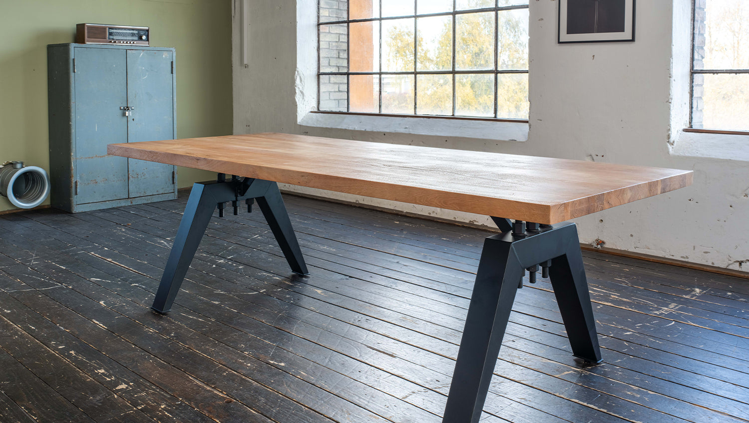 La mesa de madera maciza REY de KAWOLA combina materiales de alta calidad con un estilo moderno, lo que la convierte en el centro de atención de cualquier comedor. La superficie del tablero de madera maciza de acacia está cepillada y es de color roble, lo que acentúa a la perfección el veteado natural de la madera. El borde recto acentúa el diseño moderno y crea un aspecto armonioso y despejado, ideal para comedores contemporáneos. El marco de la base soldado rústico y lacado en negro en diseño industrial da a la mesa un toque moderno e industrial. Esta acertada combinación de madera natural y metal robusto convierte a la mesa en un elemento de diseño destacado en su comedor. Disponible en longitudes de 200 cm, 220 cm, 240 cm, 260 cm, 280 cm y 300 cm, la mesa ofrece mucho espacio para comidas en común o veladas acogedoras. La Mesa de comedor REY es la elección perfecta para cualquier persona que aprecie el diseño moderno y la mano de obra de alta calidad. Una pieza única para cualquier salón o comedor.