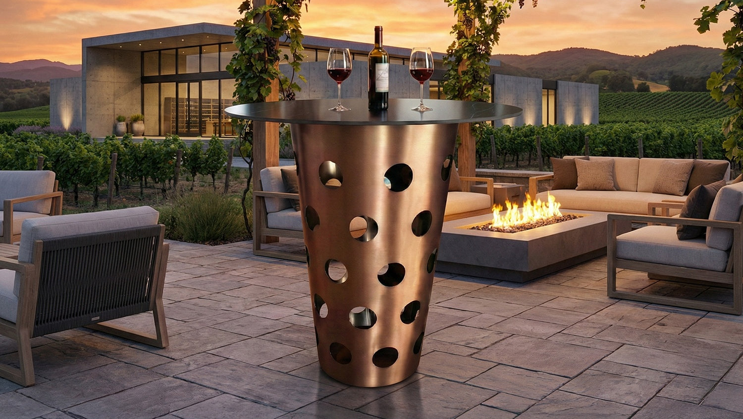 Gracias a su combinación de materiales de alta calidad, la mesa de bar VINO también es ideal para su uso en exteriores. Tanto la estructura como el tablero son extremadamente resistentes a las inclemencias del tiempo. Por lo tanto, la mesa VINO no solo es una solución elegante y duradera para el salón, sino también para la terraza, el balcón o las zonas de bar al aire libre.