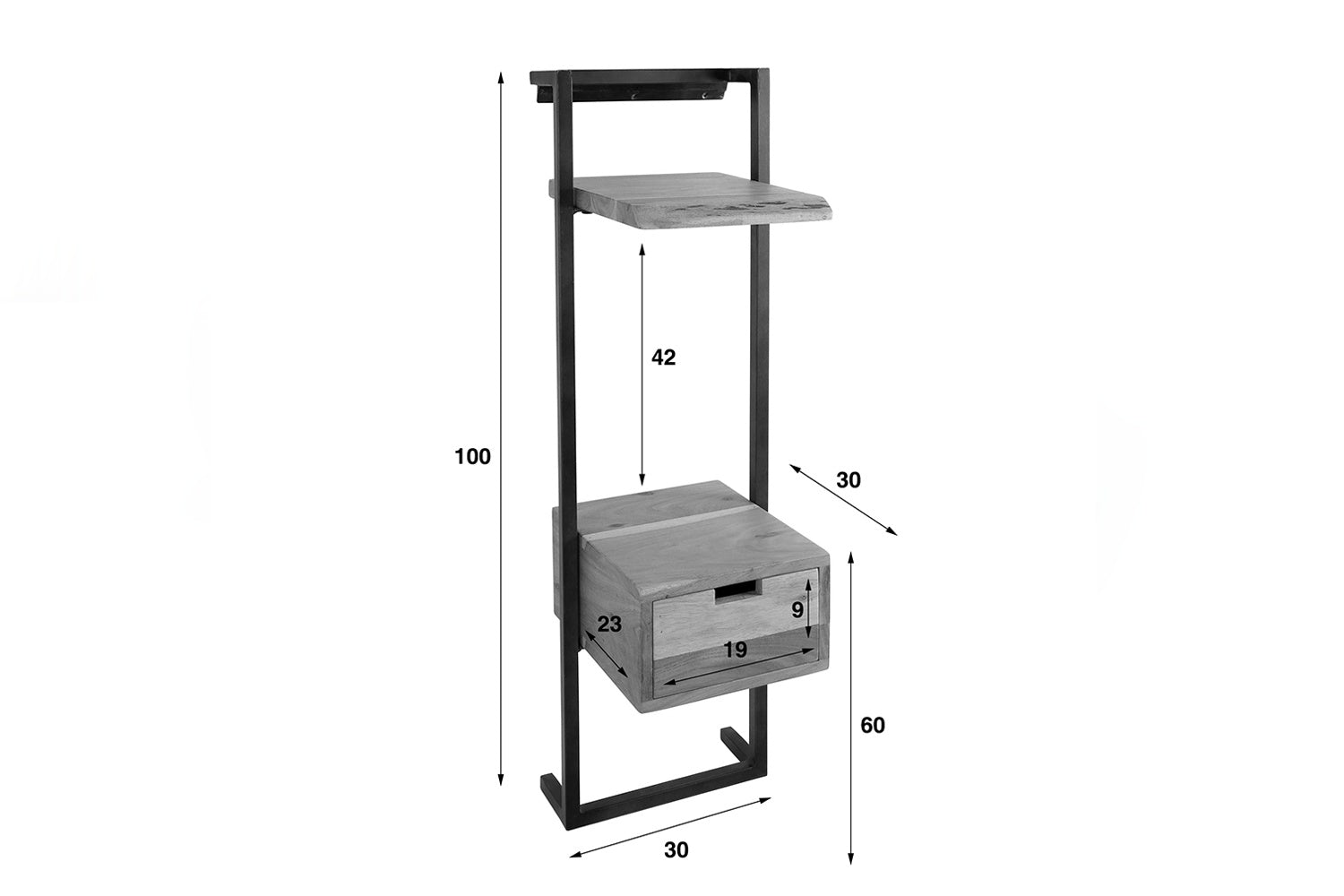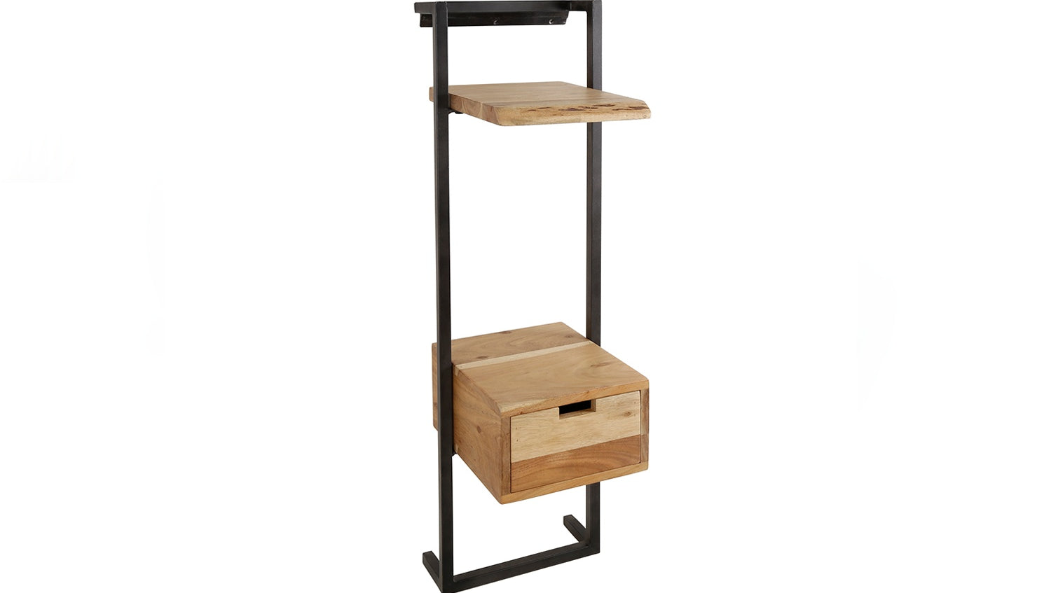 La mesilla de noche KAWOLA AIDY impresiona por su moderno diseño y sus materiales de alta calidad. Fabricada en madera de acacia maciza con un lacado transparente mate, aporta una elegancia natural a su dormitorio. El robusto armazón de metal no sólo proporciona estabilidad, sino también un aspecto elegante e industrial. La mesilla de noche puede fijarse a la pared de forma fácil y segura mediante un robusto listón con tres orificios para tornillos, para conseguir un aspecto flotante y ahorrar espacio. Con unas medidas de 30 x 30 x 100 cm, AIDY ofrece mucho espacio de almacenamiento vertical y es ideal para libros, adornos u objetos cotidianos. La mesilla de noche AIDY es la elección perfecta para cualquiera que desee combinar funcionalidad con diseño moderno y mano de obra de alta calidad.