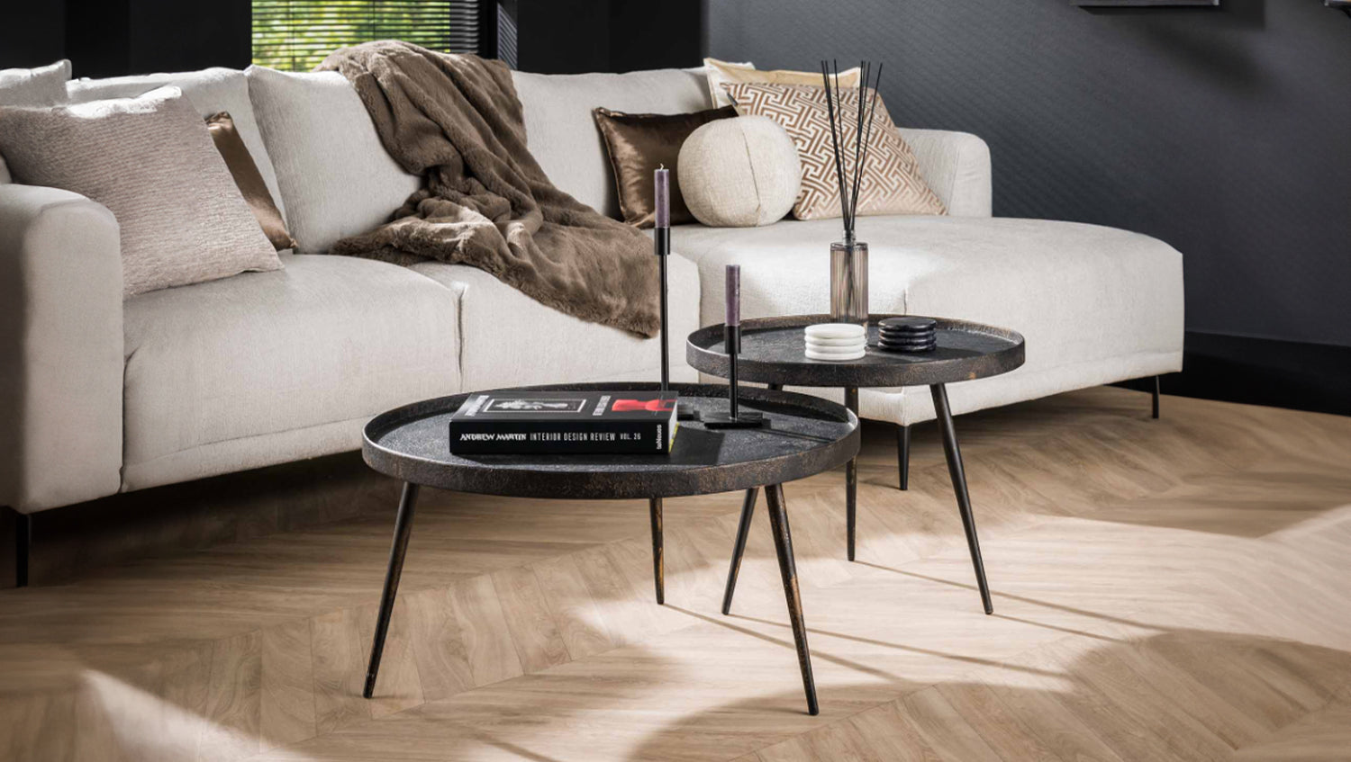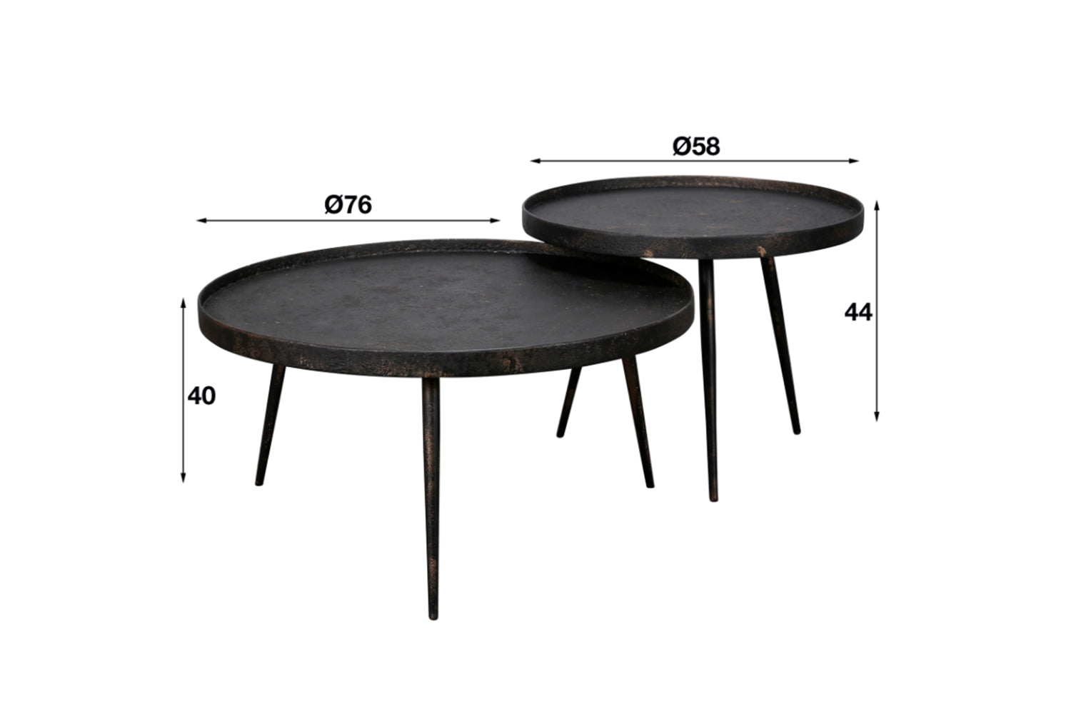 El juego de mesa de centro redonda MAURI de KAWOLA está acabado en metal negro. El tablero tiene un bonito acabado que le confiere un aspecto único. Las mesas pueden colocarse juntas según se desee. Este conjunto llama la atención. Consta de dos mesas. La más grande tiene un diámetro de 76 cm y una altura de 40 cm, mientras que la más pequeña tiene un diámetro de 58 cm y una altura de 44 cm. Ya sea en un moderno loft, en un acogedor salón o en una elegante sala de estar, el juego de mesa de centro MAURI pone acentos de estilo y combina funcionalidad con una estética atemporal.