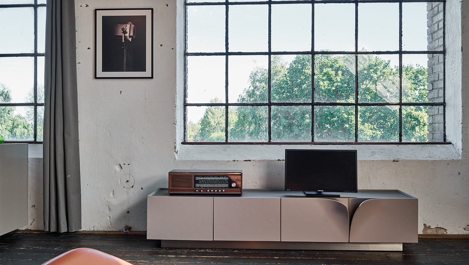 Descubra el moderno Mueble bajo EMMA de KAWOLA, un mueble con estilo de loft urbano. El Aparador gris encaja a la perfección en salones modernos. Con una altura de 42 cm, una profundidad de 42 cm y una anchura de 200 cm, ofrece un amplio espacio de almacenamiento para dispositivos multimedia, DVD, etc. El estante está diseñado para televisores de hasta 90 pulgadas, para una experiencia visual impresionante. El Mueble bajo tiene 4 compartimentos y 4 puertas para una organización óptima. El frontal metálico revestido de piel sintética sirve también de asa. El zócalo de acero inoxidable cepillado forma una base robusta y un sofisticado detalle de acento. EMMA no es sólo funcional, sino también un elemento decorativo de elegancia urbana. Disfrute de la variedad de confort y estilo de este extraordinario mueble: la fusión perfecta de estética y funcionalidad. Convierta su salón en un lugar de relajación y entretenimiento con el moderno Mueble bajo EMMA de KAWOLA. Consiga hoy mismo este Aparador de alta calidad para dar un toque de sofisticación urbana a su hogar.