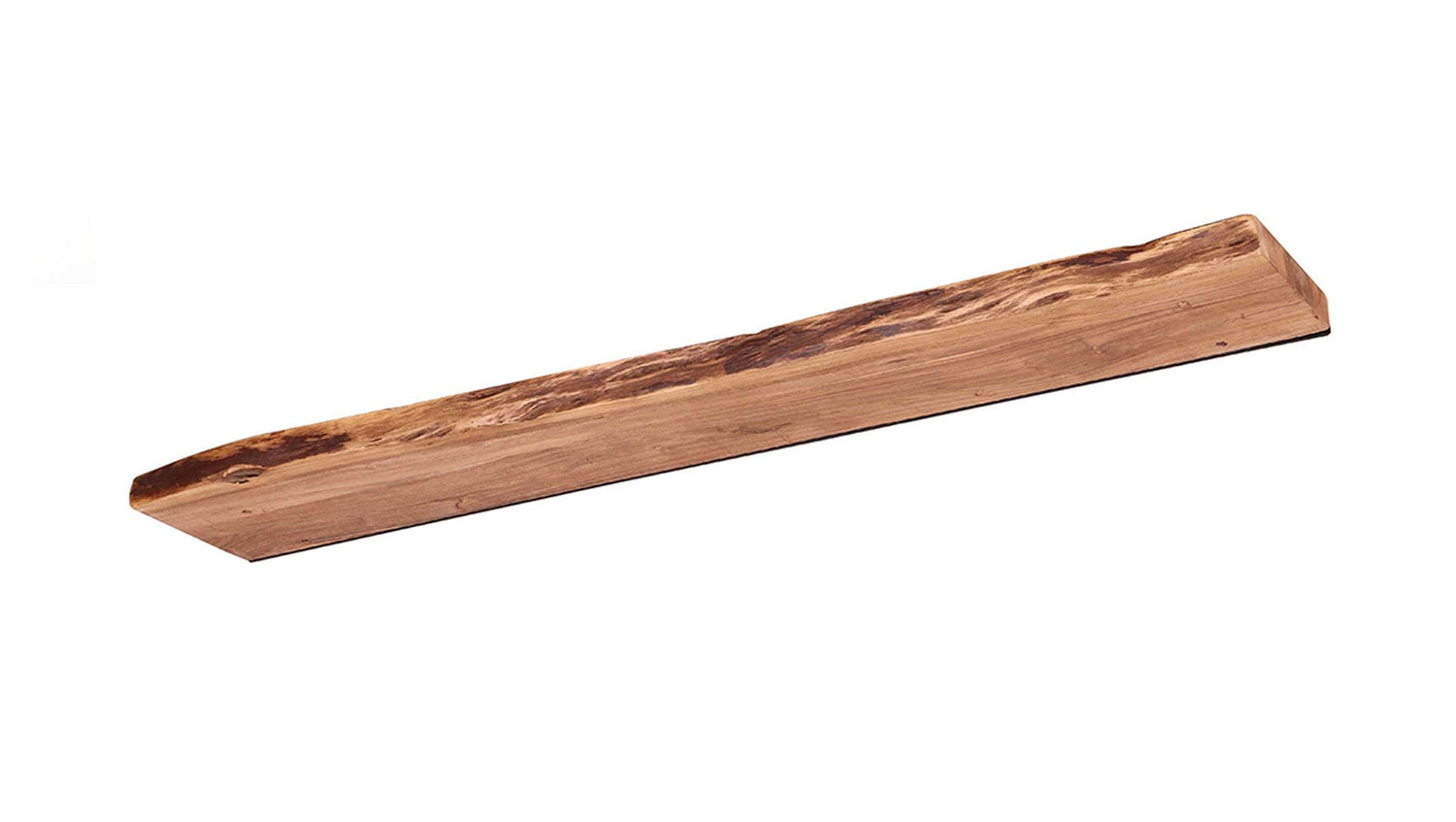 La estantería de pared KAWOLA ERGEA es una estantería de 120 cm de ancho fabricada en madera de acacia maciza y acabada con un lacado mate transparente. Los extremos de la estantería tienen una robusta forma de tronco de árbol lijado, que crea un aspecto natural a la vez que rústico. Gracias al soporte oculto de la estantería, ésta queda invisiblemente sujeta a la pared, por lo que parece flotar.