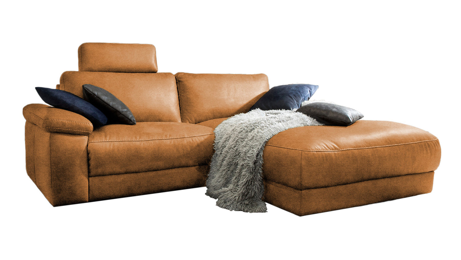 KAWOLA Sofá LOLA Sofá esquinero coñac con función relax motorizada varias fundas fundas