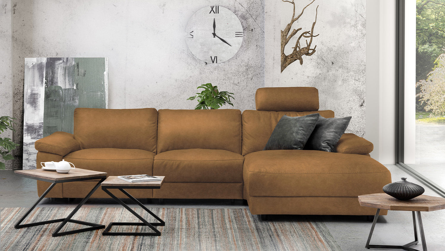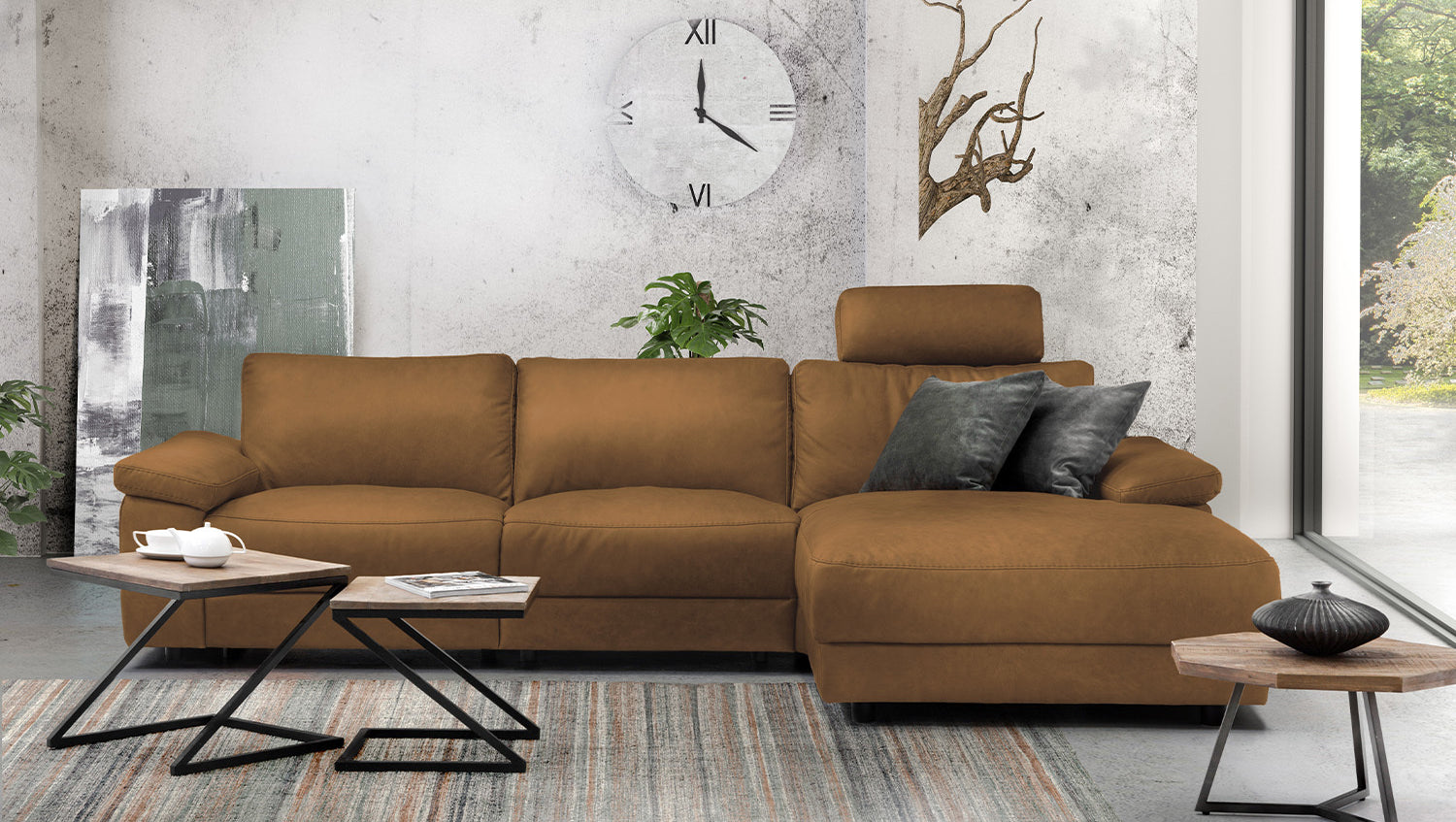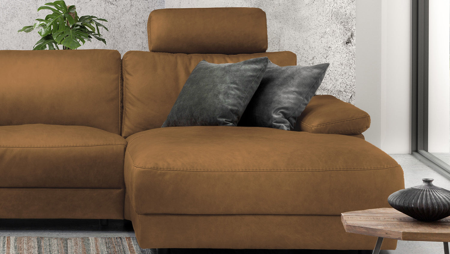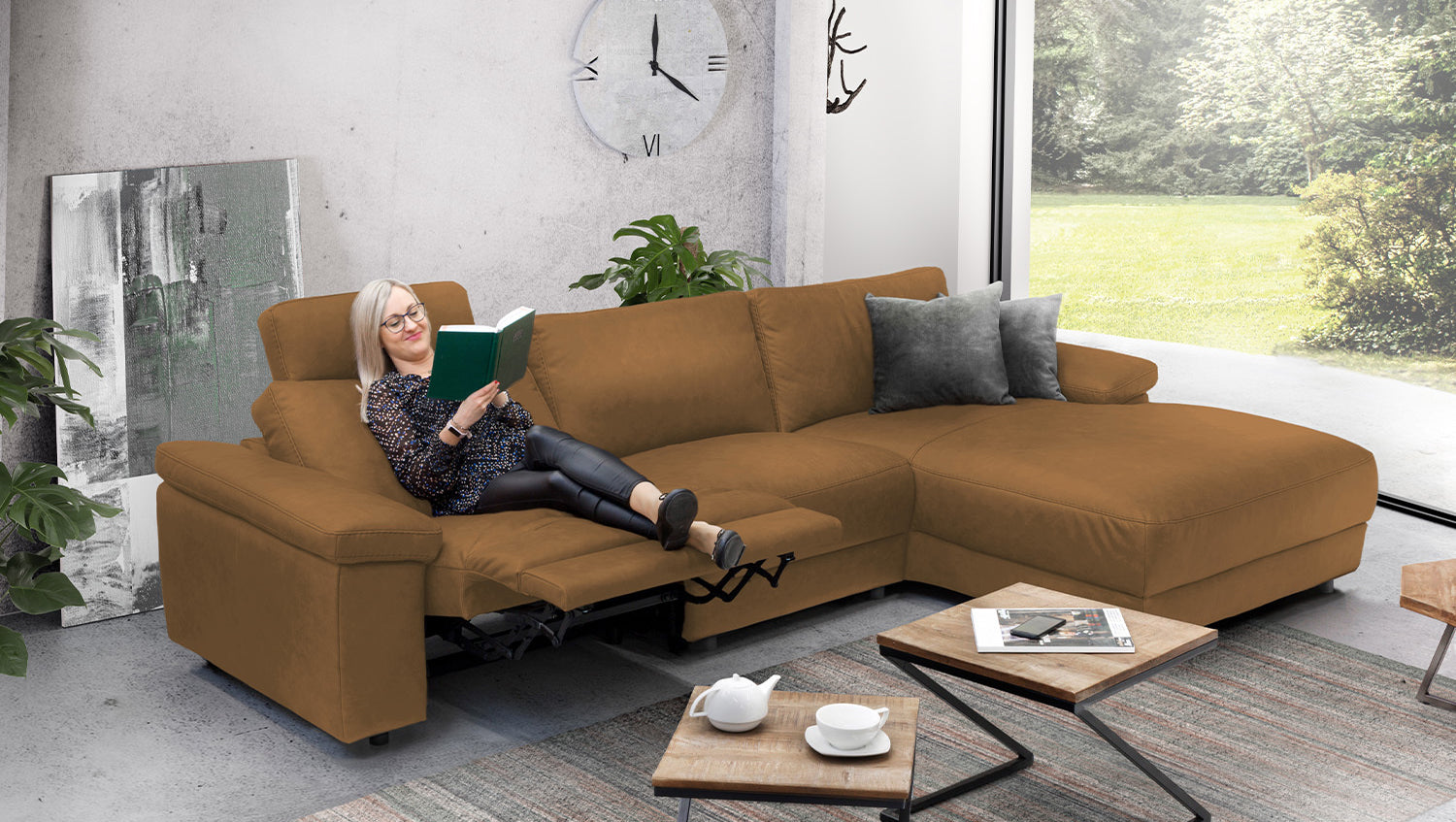 KAWOLA Sofá LOLA Sofá esquinero XL coñac con función relax motorizada varias fundas fundas