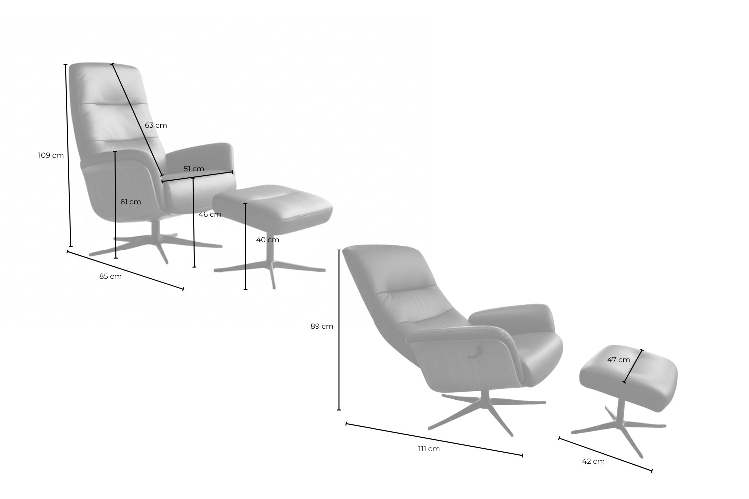 • Reposacabezas y reposapiés: alivian la tensión en el cuello y las piernas para que puedas sentarte de forma totalmente relajada.
