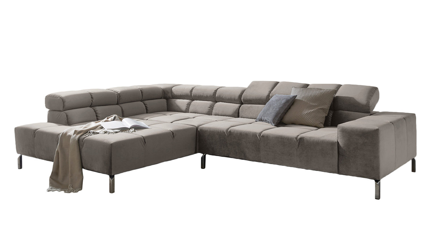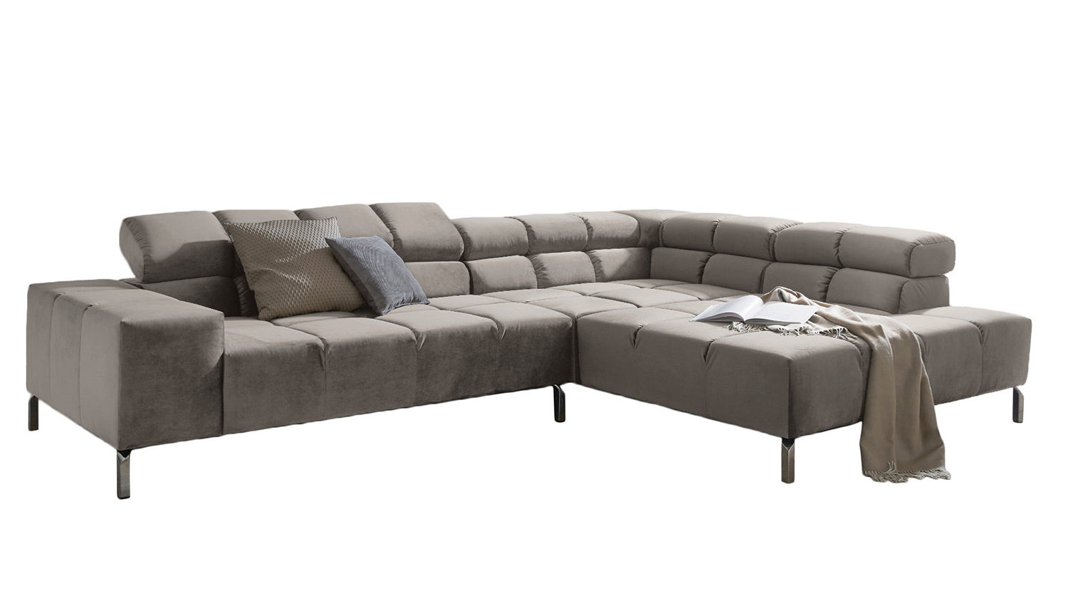 KAWOLA Sofá NELSON esquinero Terciopelo plata