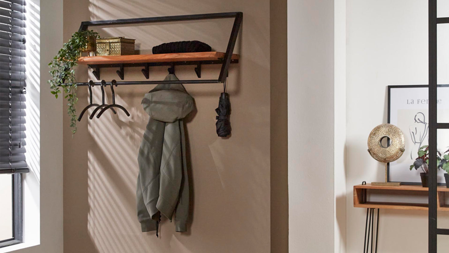El perchero de pared ALEGRA de KAWOLA impresiona por su diseño de alta calidad y su sofisticada funcionalidad. El perchero de madera maciza de acacia impresiona por su veteado natural y su elegante acabado en negro, que le confiere un aspecto único. Debajo del estante hay 6 robustos ganchos y una barra de metal para colgar perchas, ambos de metal con recubrimiento en polvo para una calidad duradera. El Guardarropa de 100 cm de ancho, 38 cm de alto y 32 cm de profundidad se puede montar de forma segura utilizando dos ojales. Ideal para pasillos, vestíbulos o zonas de entrada, ALEGRA ofrece una solución elegante para una mayor organización.