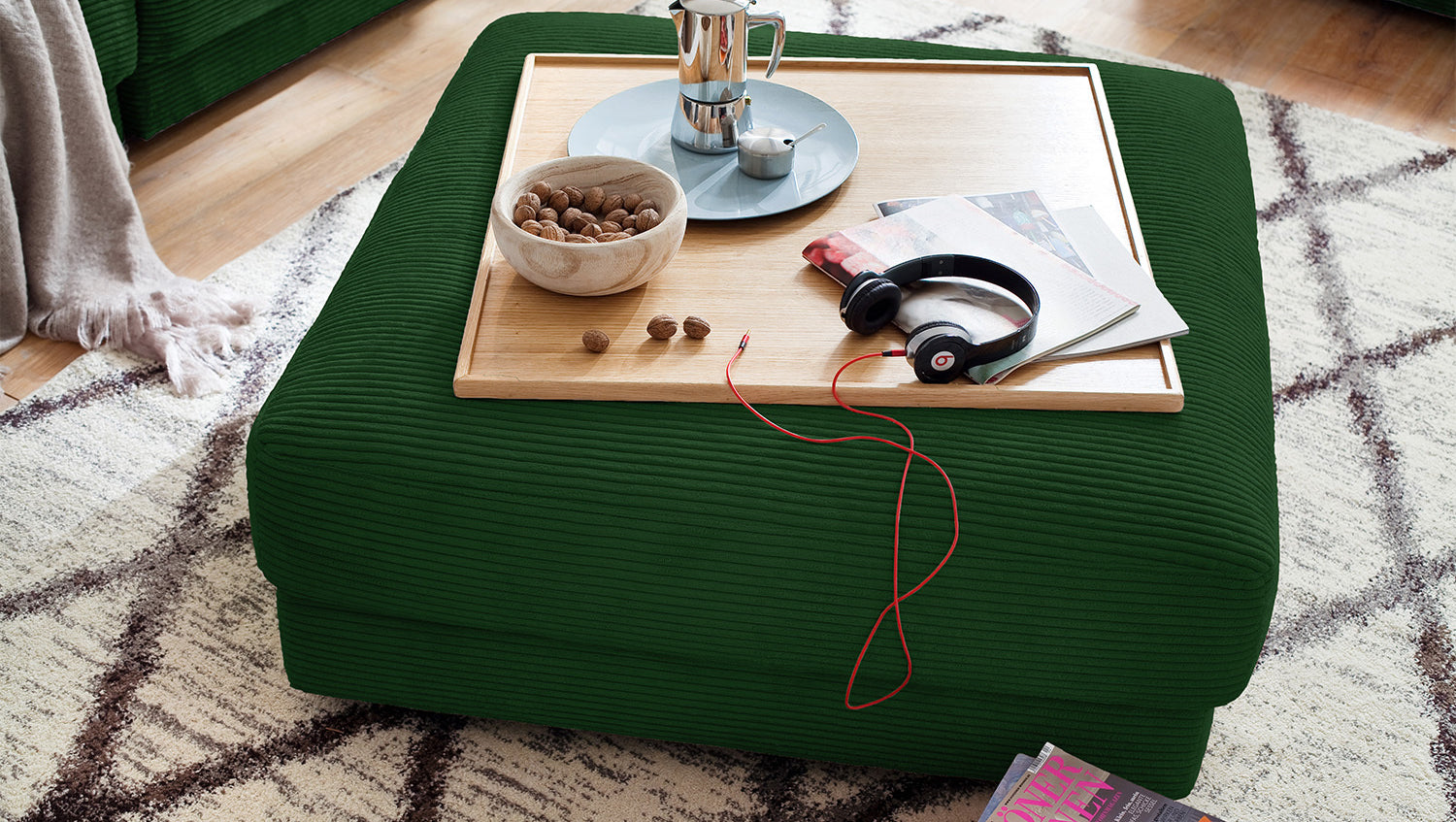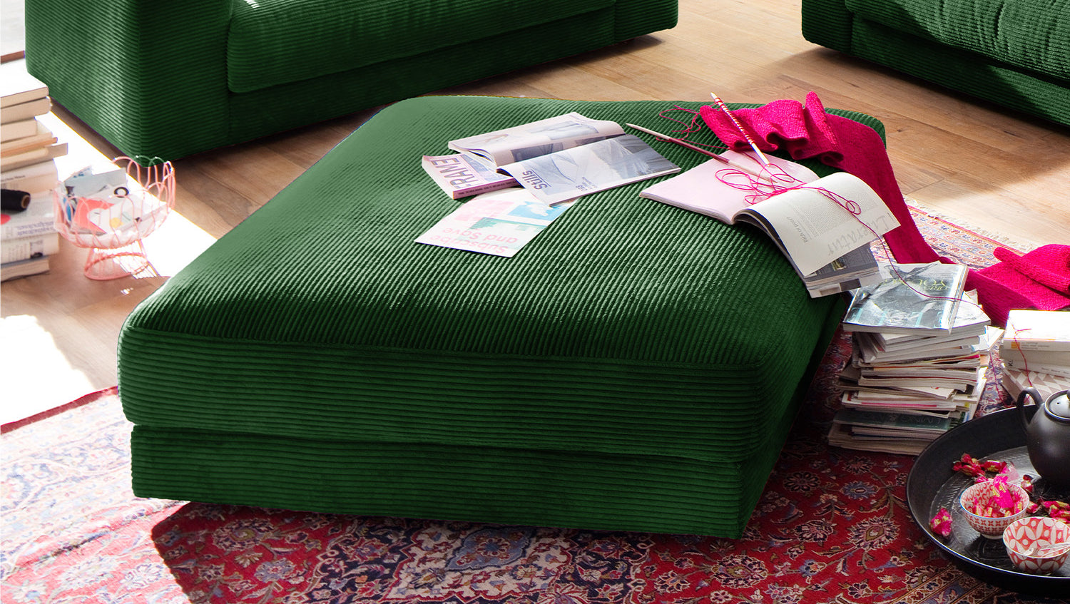 2a oportunidad KAWOLA Taburete grande MADELINE taburete tapizado Pana esmeralda