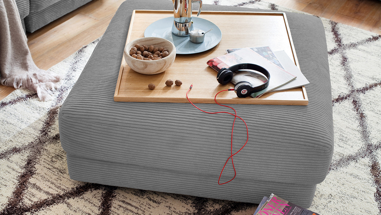 Se trata de 2a oportunidad, que se ofrece a un precio reducido. Los defectos específicos de este artículo se documentan con precisión en las imágenes del producto (al final de la galería de imágenes) y en los detalles del producto. Tenga en cuenta que estos artículos proceden de devoluciones de clientes y, por tanto, ya no están disponibles en su embalaje original. No se puede descartar la presencia de otros fallos o defectos no detectados. El Puf grande MADELINE de KAWOLA impresiona por su extraordinaria comodidad de asiento, que se debe al acolchado extremadamente desenfadado e invita a quedarse y relajarse. Su forma moderna y urbana confiere al taburete tapizado un aspecto inconfundible. Con su diseño atemporal, se integra perfectamente en cualquier ambiente y destaca en cualquier interior. Si desea dar un toque extraordinario a su salón, el Puf grande MADELINE es sin duda lo que necesita. El Puf es también el complemento perfecto para los sofás Pana de la gama MADELINE.
