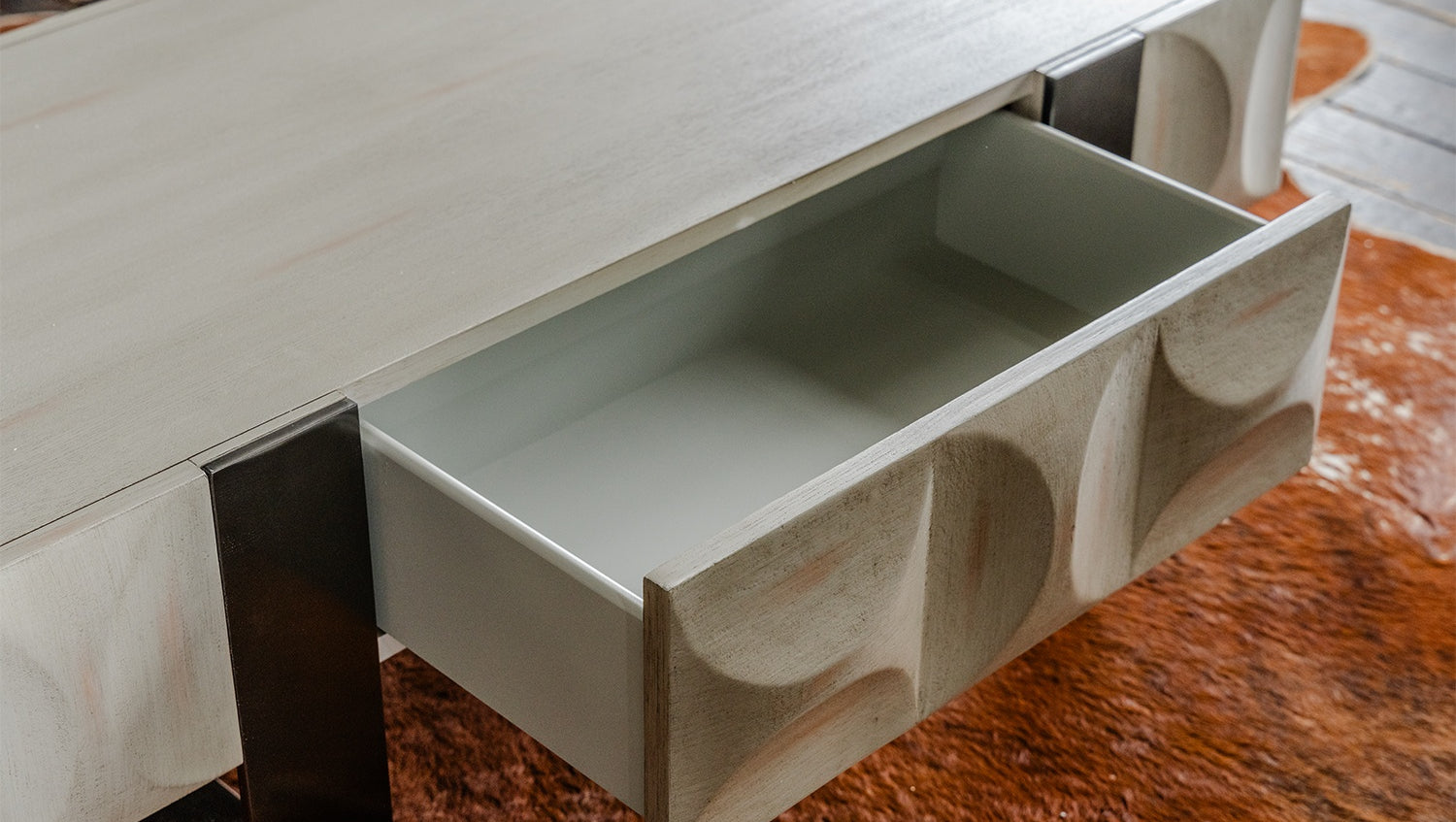 El Mueble bajo MARGO de KAWOLA impresiona por su elegante combinación de diseño moderno y funcionalidad práctica. También es ideal como mesa de centro o mesa auxiliar. El cuerpo y el cajón están elegantemente chapados en madera de olmo gris de alta calidad, lo que confiere al mueble un aspecto lujoso. Un cajón ofrece un amplio espacio de almacenamiento y puede abrirse sin esfuerzo gracias al tirador encastrado de la parte superior. Las patas de patín de acero inoxidable cepillado de color plateado crean un aspecto moderno y atemporal a la vez que proporcionan estabilidad. El Mueble bajo MARGO de KAWOLA se integra perfectamente en cualquier ambiente y es ideal para los amantes de los muebles originales y elegantes. Descubra la combinación perfecta de diseño y funcionalidad con el Mueble bajo MARGO.