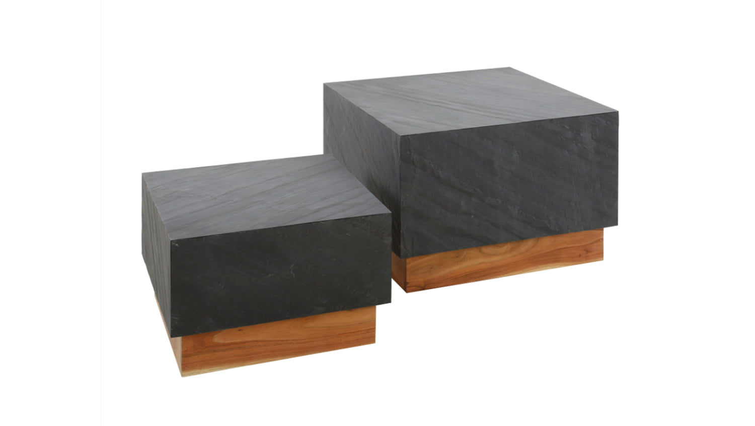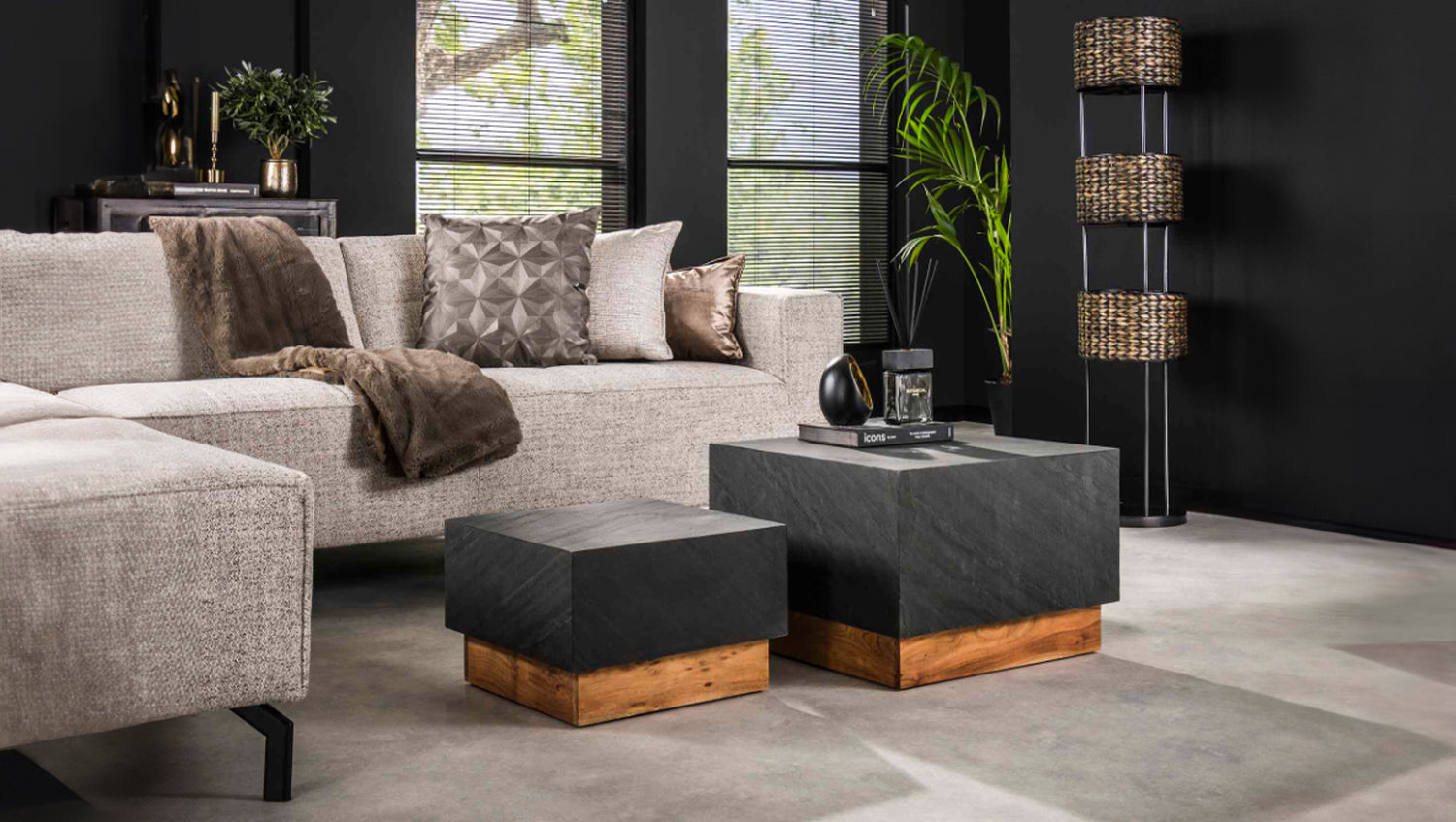 El juego de mesas de centro NOME de KAWOLA impresiona por su elegancia atemporal y sus materiales naturales. Consta de dos mesas de formas preciosas que son un complemento elegante para cualquier salón. Los tableros de las mesas están acabados con una fina capa de pizarra - para una superficie elegante y un peso agradable. La robusta base de madera de acacia maciza crea un aspecto cálido y natural y da estabilidad a las mesas. La mesa más grande mide 58 x 58 cm con una altura de 40 cm, la más pequeña 45 x 45 cm con una altura de 30 cm - ideal para combinar y variar. Ya sea moderno, clásico o rústico: el juego de mesas de centro NOME se adapta a cualquier estilo de vida y atrae todas las miradas. Perfecto para quien desee combinar diseño, calidad y funcionalidad en un solo mueble.