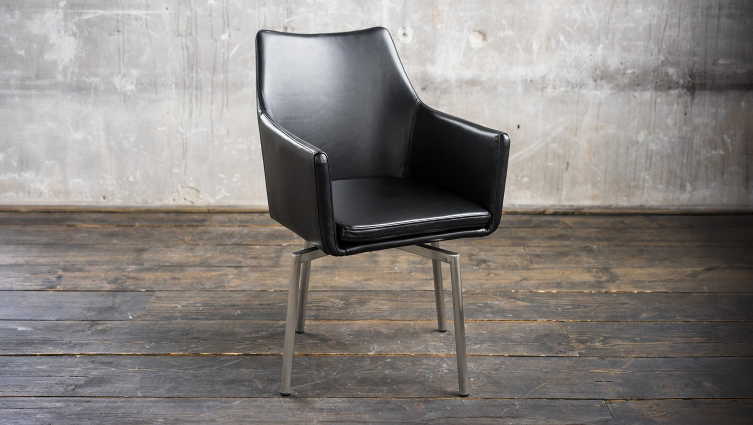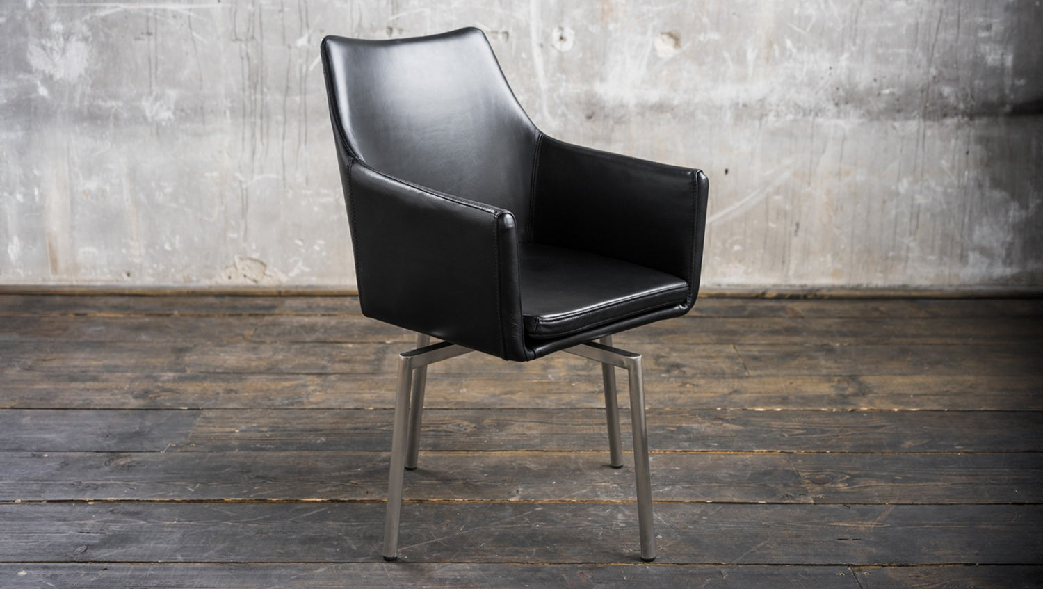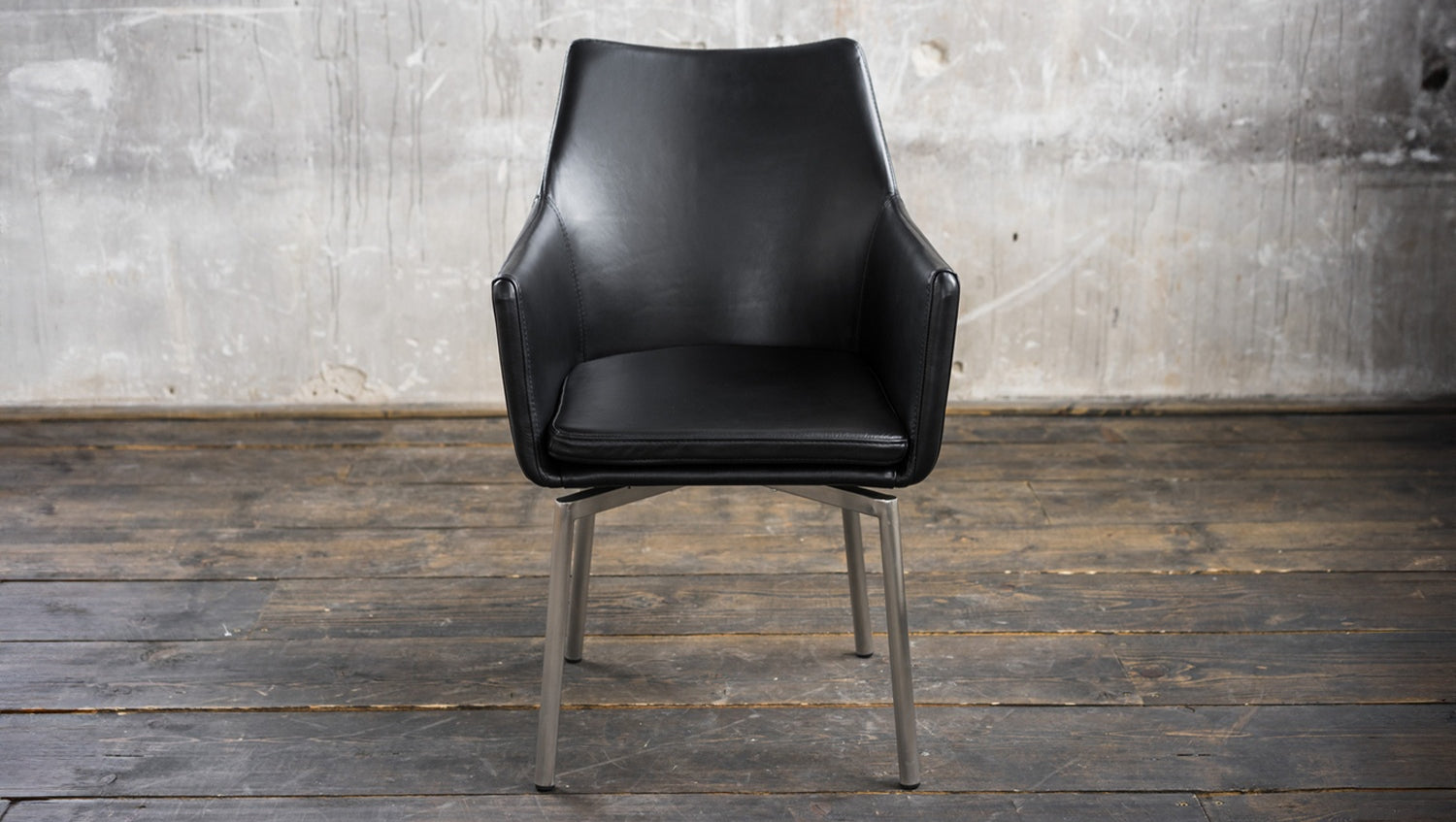 Producto de segunda mano_Silla KAWOLA Cali, piel sintética negra, patas de acero inoxidable