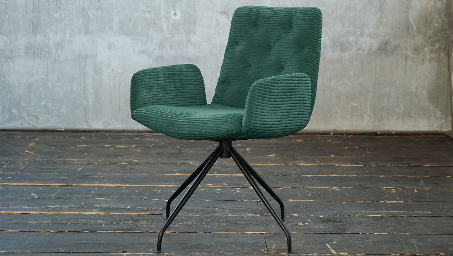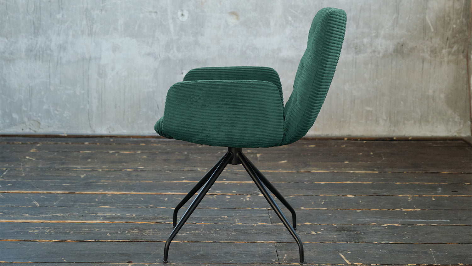 La silla de comedor KAWOLA NEW CHARME no es sólo un mueble, sino un auténtico elemento de diseño que pone un nuevo acento en su hogar. El estilo de la serie NEW CHARME recuerda a los años sesenta: el respaldo está cosido de forma elaborada sin botones; el respaldo está ligeramente curvado hacia delante en ambos lados y recuerda la forma de una silla de ala; el armazón metálico puede girar 360°. Además de la inusual forma de la silla NEW CHARME, la funda se ha elegido en un moderno tejido de pana. Si lo que busca no es sólo una silla de comedor, sino una silla atemporal y elegante que marque tendencia, la serie NEW CHARME de KAWOLA es la elección perfecta.