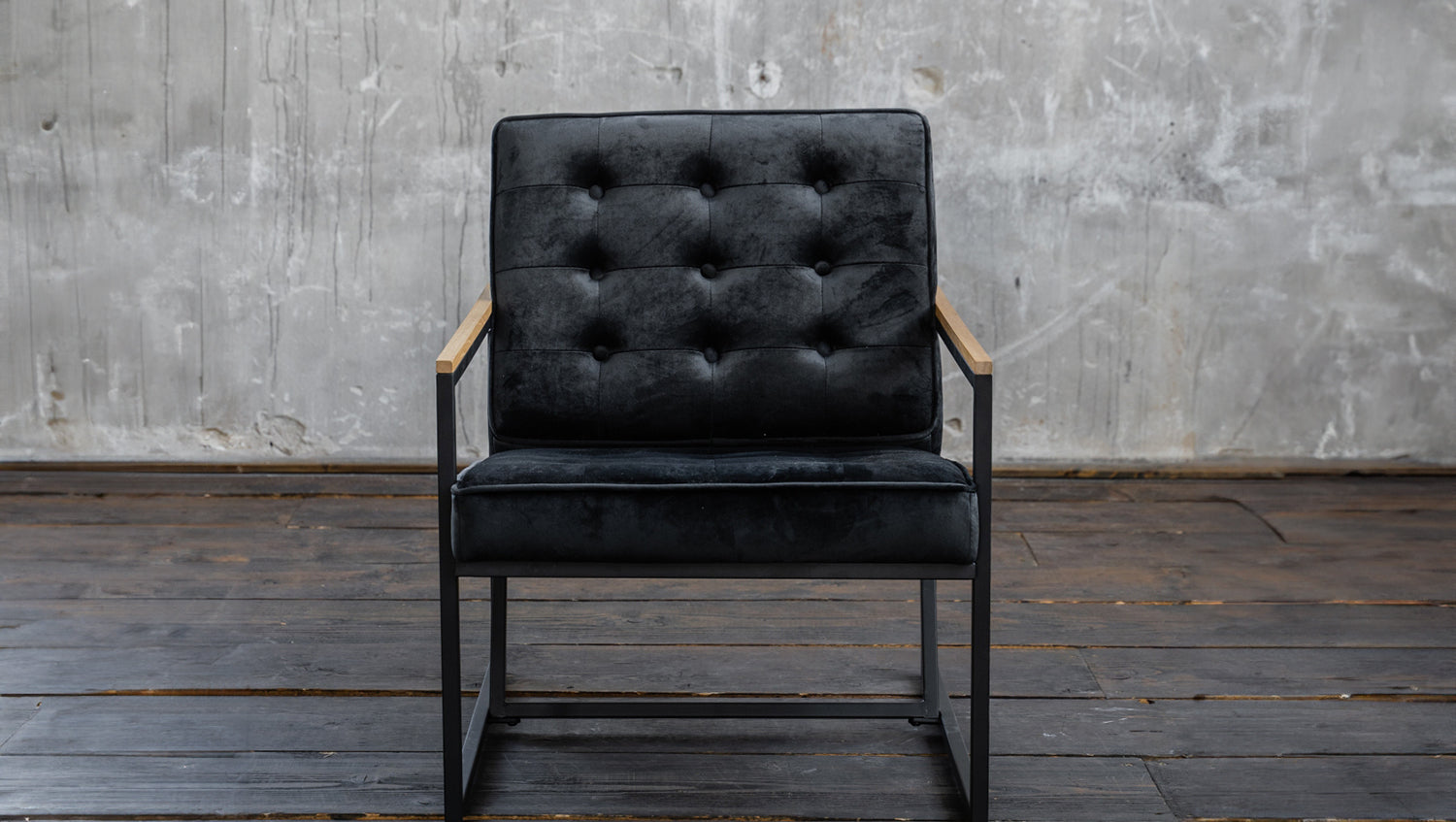 Sillón KAWOLA ARLY tapizado en terciopelo negro
