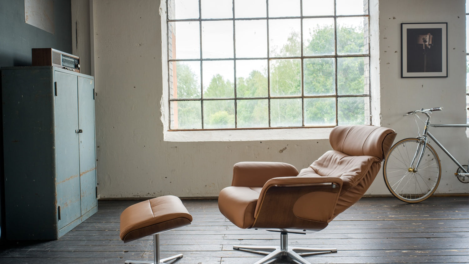 Producto de 2a oportunidad Sillón KAWOLA TOSAR Sillón relax giratorio de cuero marrón con Puf