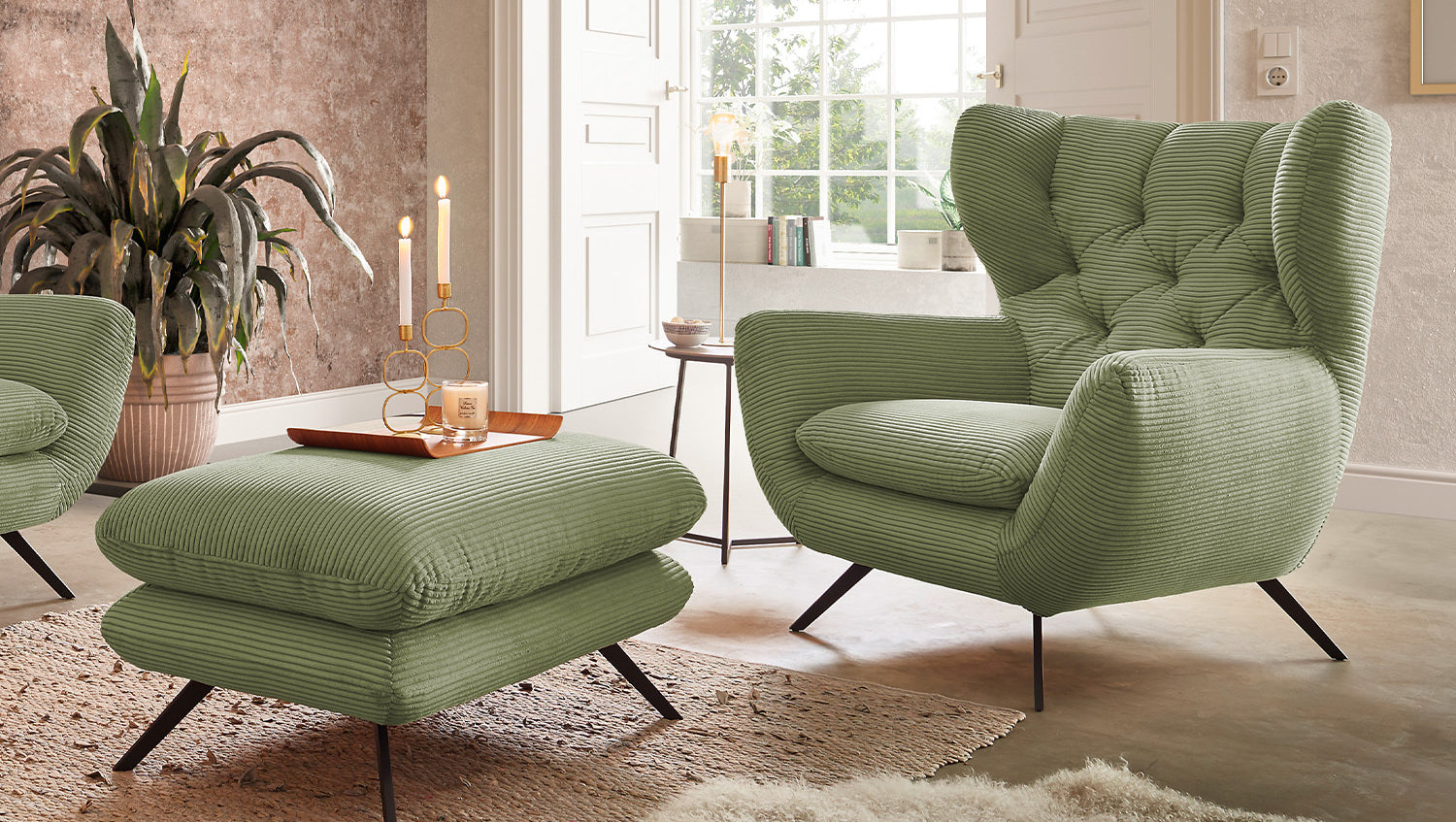 KAWOLA sillón CHARME sillón de respaldo alto Pana verde oliva