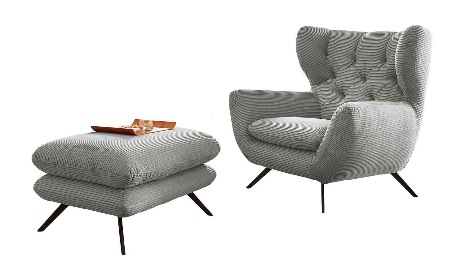 KAWOLA sillón CHARME sillón de respaldo alto Pana gris claro