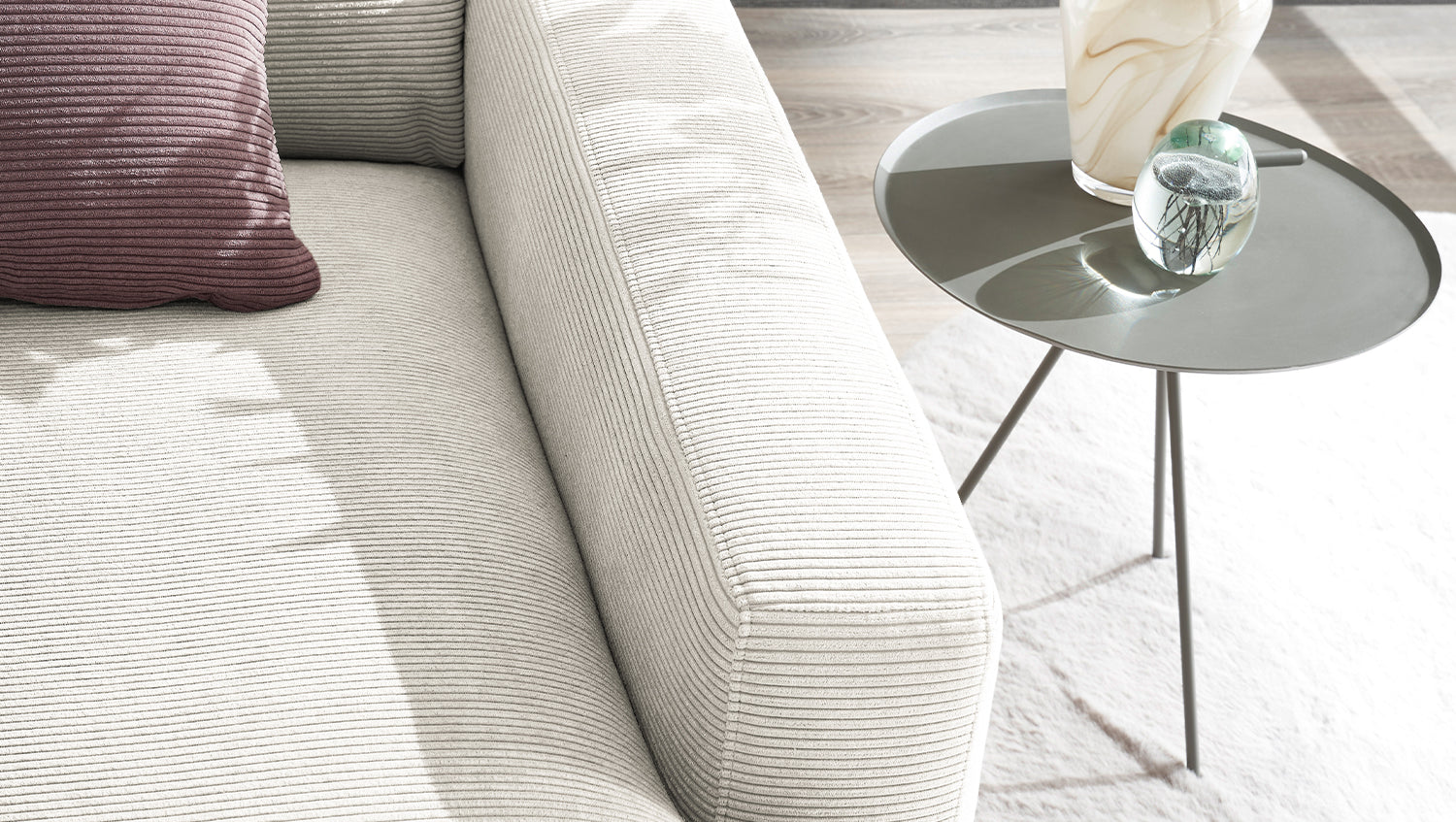 El asiento largo KAWOLA CARA combina el diseño clásico con la practicidad moderna y se integra a la perfección en cualquier interior. Sus formas suaves y la funda de Pana fina de moda confieren al asiento largo una elegancia atemporal. El tapizado se adapta a la forma del cuerpo; las impresiones del asiento y las ondulaciones de las fundas son típicas del producto. El asiento consta de una base de muelles con muelles ondulados de acero de elasticidad permanente y una funda superior, así como cojines de asiento sueltos de espuma de poliuretano. El asiento y el respaldo están tapizados con un relleno de alta calidad que contiene una mezcla de plumas. Para evitar que el material de relleno se comprima, los Cojines respaldo deben sacudirse después de su uso. Sea cual sea la ocasión, todos encontrarán un lugar para relajarse en el asiento largo CARA.