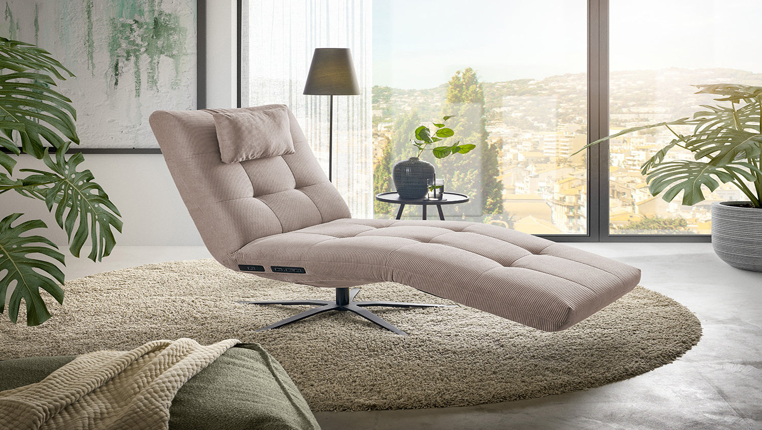 La chaise longue LETICIA de KAWOLA combina un diseño elegante con el máximo confort. El tapizado de elegante Pana fina con acabado integral confiere a la Chaise longue un aspecto de alta calidad y una agradable sensación al sentarse. Destaca especialmente la base giratoria de 360 grados, que permite la máxima flexibilidad. Gracias a la función de reclinación integrada, puede personalizar LETICIA y relajarse por completo. Cuando la función está totalmente extendida, se alcanza la posición de báscula cardíaca, en la que el corazón y los pies se encuentran en la misma posición. Esta posición optimiza la circulación sanguínea, alivia la presión sobre las piernas y es, por tanto, perfecta para relajarse. Ya sea para leer, ver la televisión o simplemente para desconectar, el sillón reclinable LETICIA es la elección perfecta para los amantes del estilo. Tenga en cuenta que el reposapiés y el respaldo no pueden utilizarse como asiento. El límite de carga para el reposapiés y el respaldo es de 30 kg.