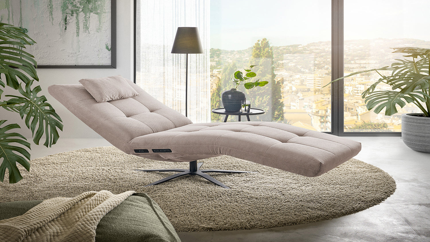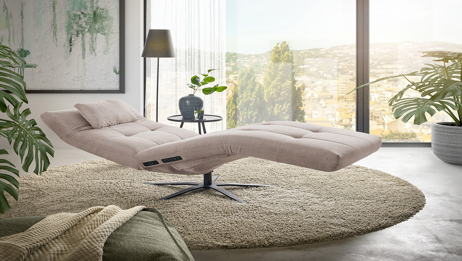 KAWOLA chaise longue LETICIA motorizada Pana fina beige
