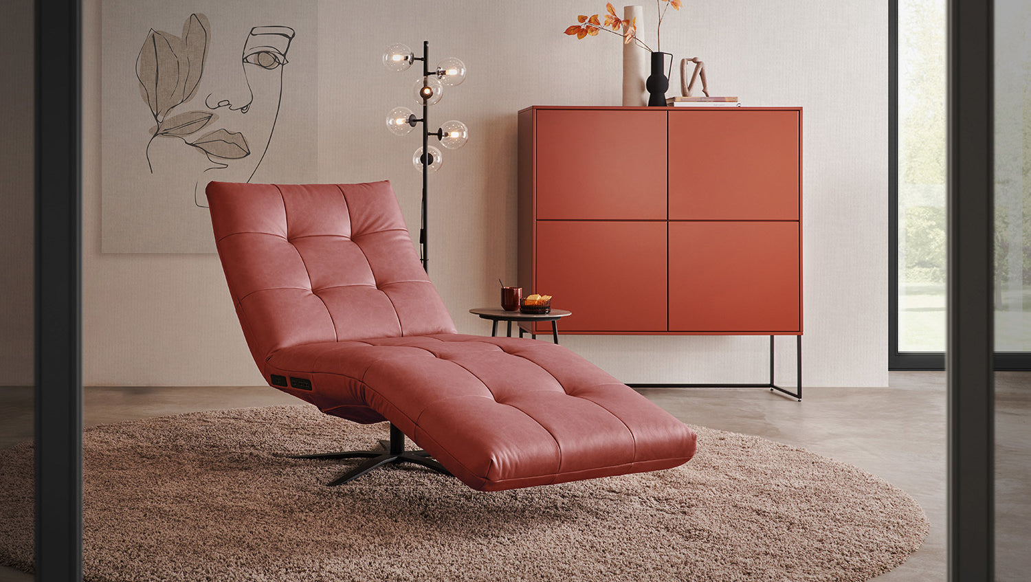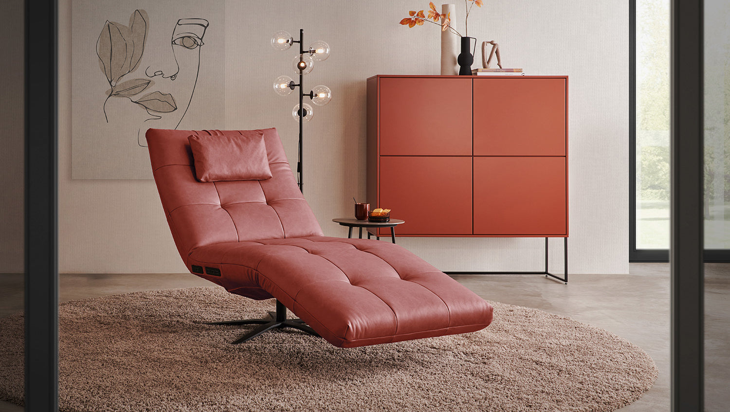 La chaise longue KAWOLA LETICIA combina un diseño elegante con el máximo confort. La elegante funda de cuero pigmentado con acabado integral confiere a la Chaise longue un aspecto de alta calidad y una agradable experiencia al sentarse. Las características naturales (por ejemplo, cicatrices, picaduras de insectos) y las variaciones estructurales y de color son inevitables y típicas del producto. Destaca especialmente la base giratoria de 360 grados, que permite la máxima flexibilidad. Gracias a la función de reclinación integrada, puede personalizar LETICIA y relajarse por completo. Cuando la función está totalmente extendida, se alcanza la posición de báscula cardíaca, en la que el corazón y los pies se encuentran en la misma posición. Esta posición optimiza la circulación sanguínea, alivia la presión sobre las piernas y es, por tanto, perfecta para relajarse. Ya sea para leer, ver la televisión o simplemente para desconectar, el sillón reclinable LETICIA es la elección perfecta para los amantes del estilo. Tenga en cuenta que el reposapiés y el respaldo no pueden utilizarse como asiento. El límite de carga para el reposapiés y el respaldo es de 30 kg.