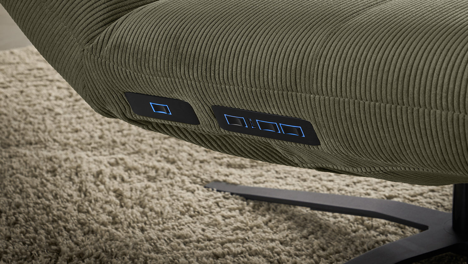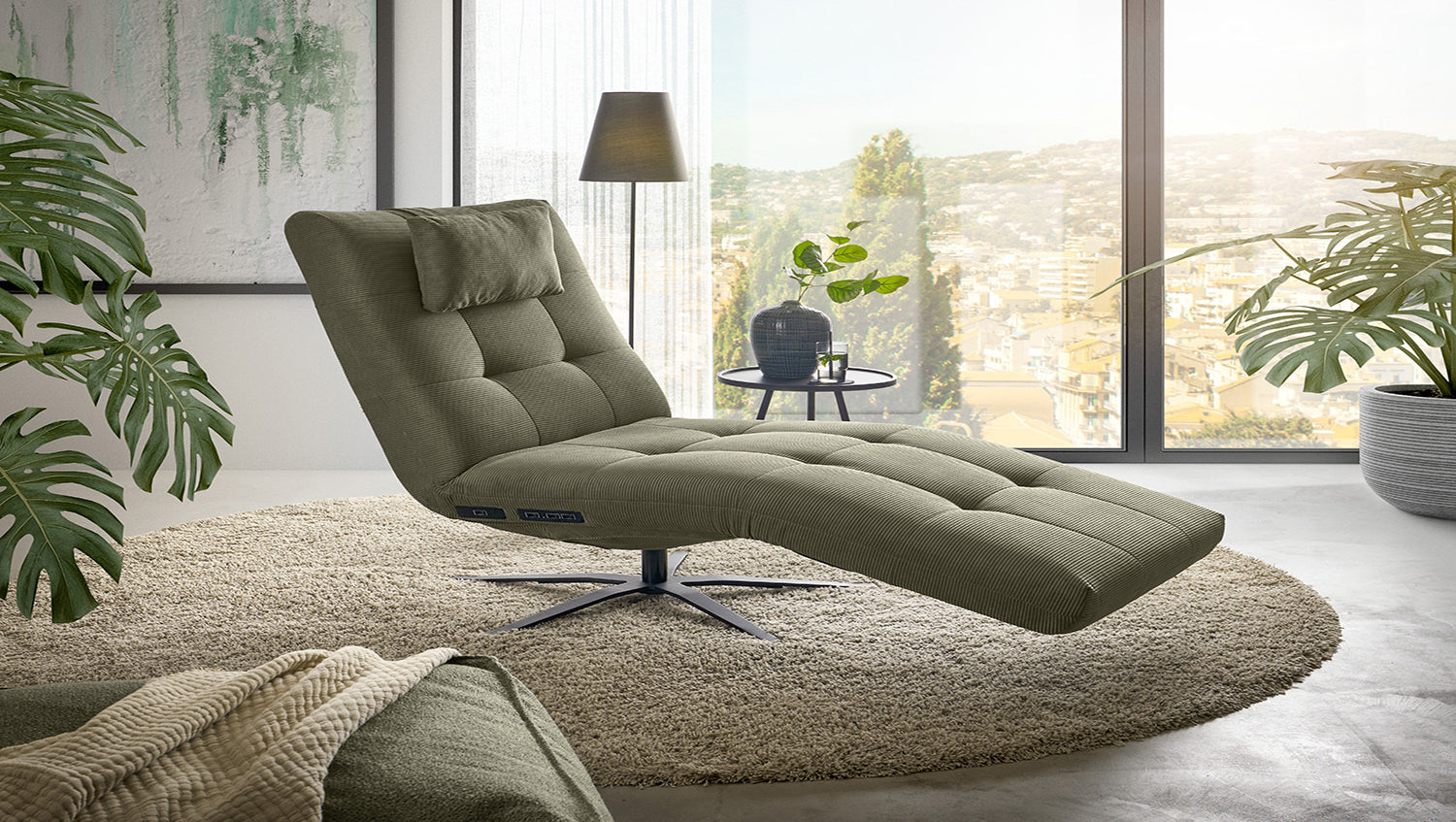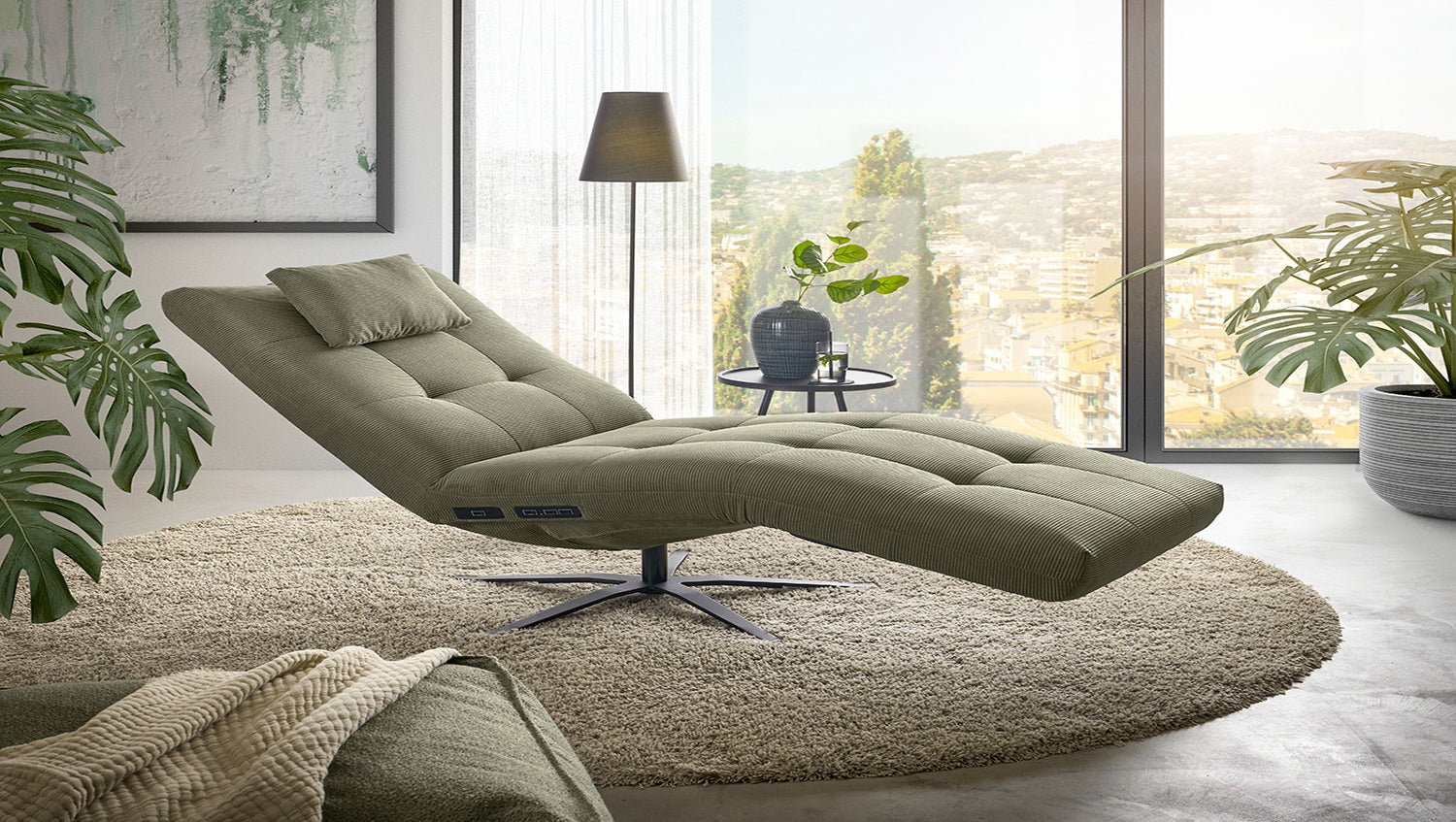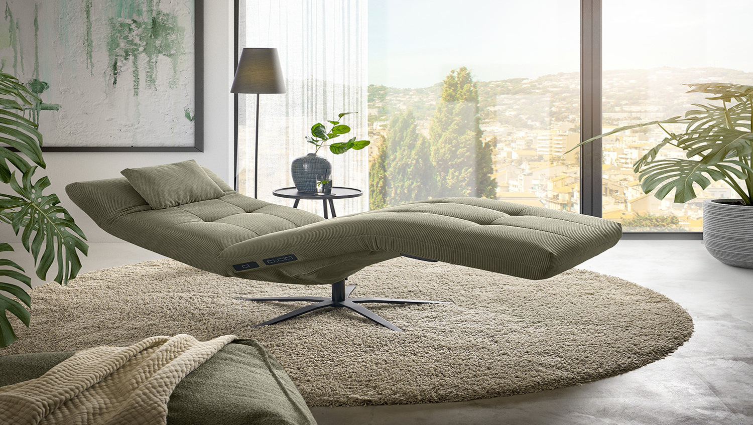 KAWOLA chaise longue LETICIA motorizada Pana fina verde oliva