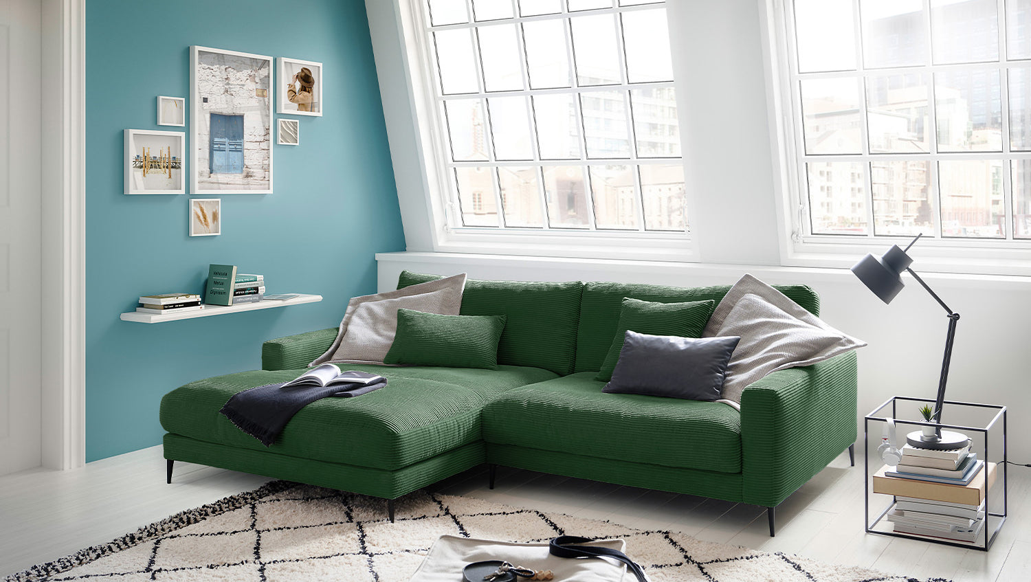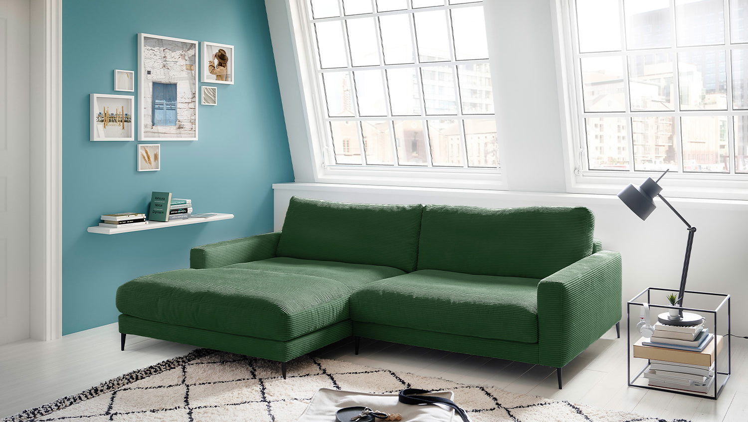 2a oportunidad KAWOLA rinconera sofa CARA sofa recamiere izquierda Pana esmeralda