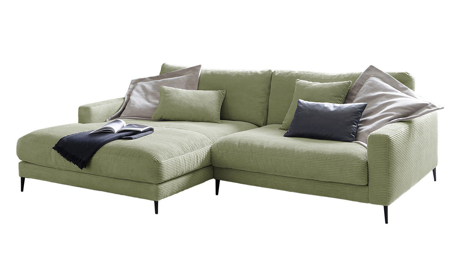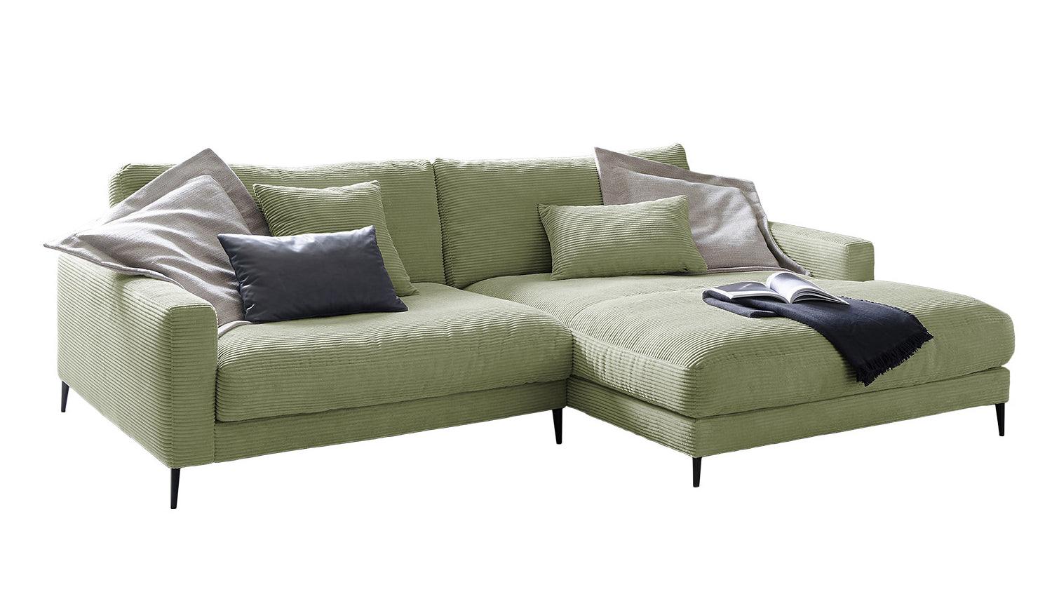 KAWOLA Sofá esquinero CARA Sofá Pana verde oliva