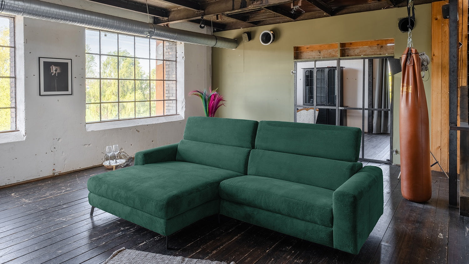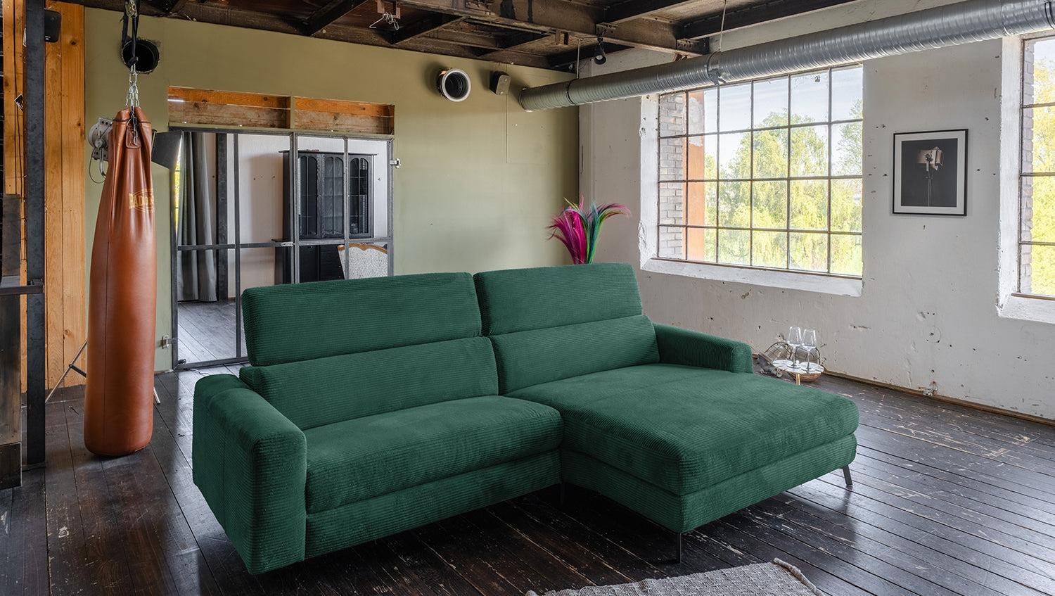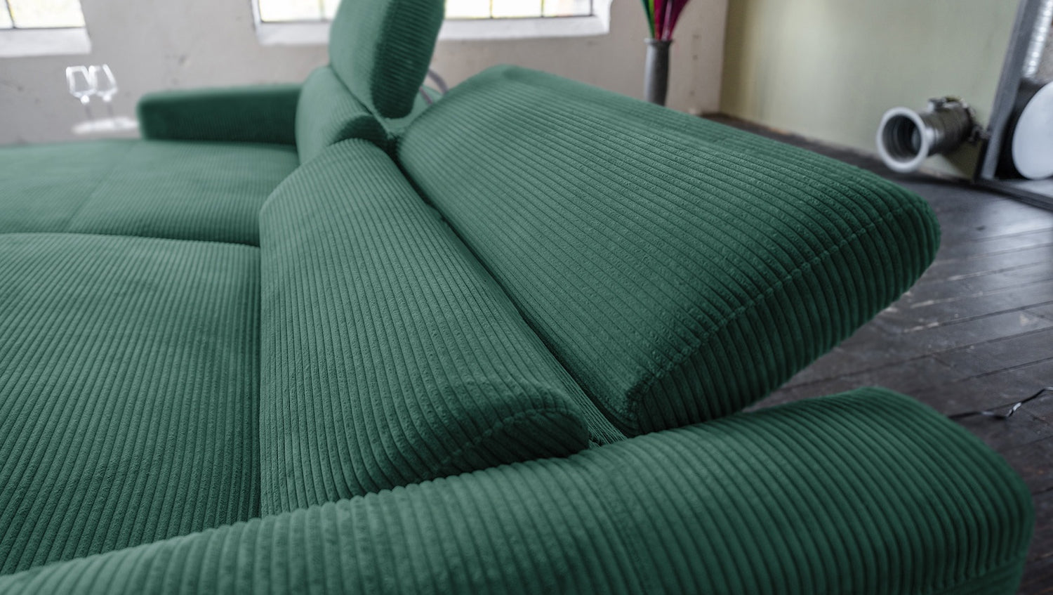 KAWOLA Sofá LAISKA Sofá esquinero Pana esmeralda