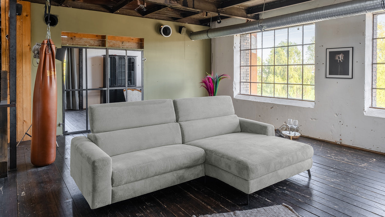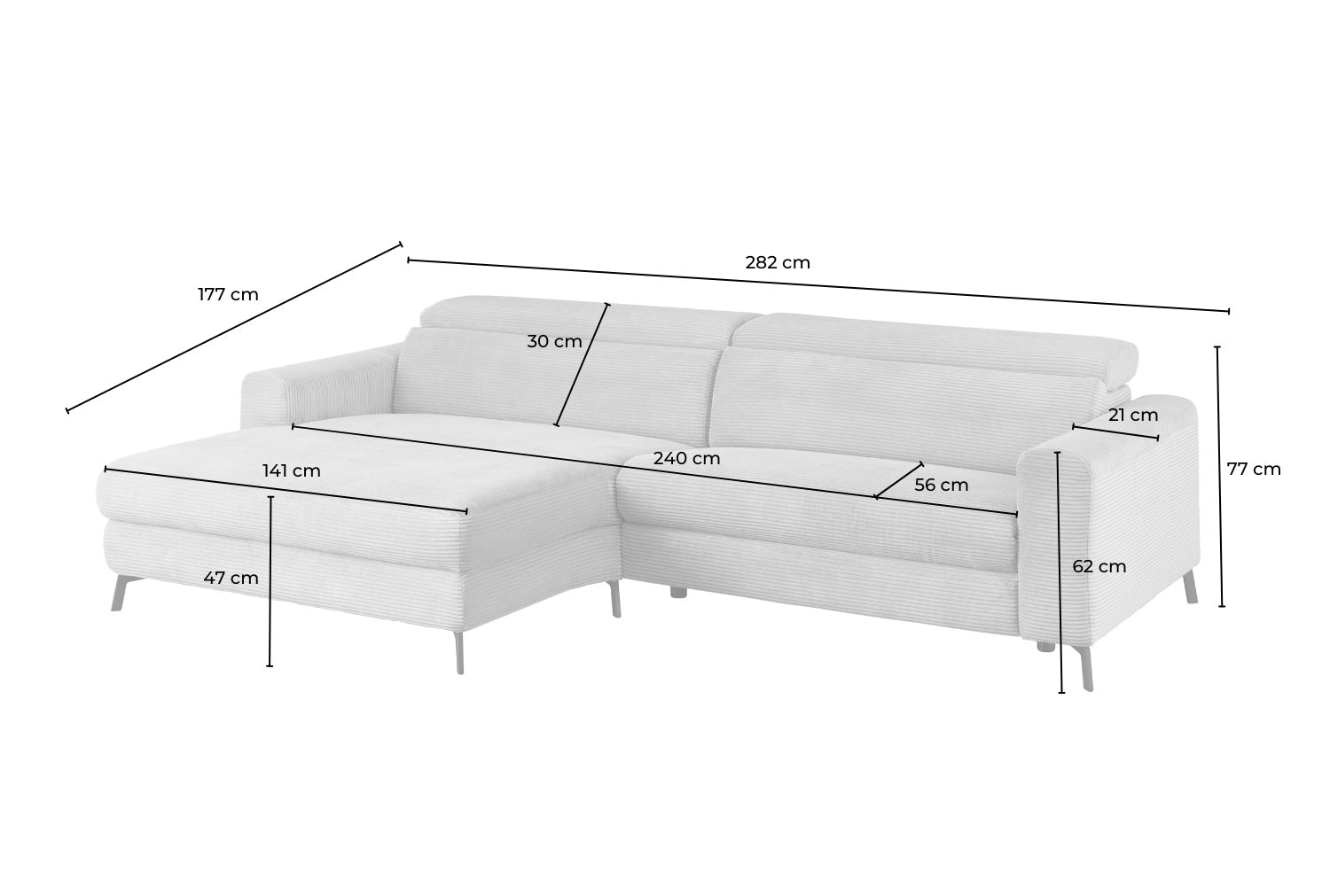 El sofá esquinero LAISKA de KAWOLA combina un diseño moderno con la máxima comodidad. El revestimiento integral de tejido de pana de alta calidad hace que el sofá no sólo atraiga las miradas, sino que también esté increíblemente de moda. La pana está de moda: gracias a su tacto aterciopelado y a su llamativa textura, aporta comodidad y elegancia a cualquier espacio. Con sus 282 cm de ancho, LAISKA ofrece mucho espacio para relajarse. La suave tapicería garantiza el máximo confort, mientras que los reposacabezas ajustables manualmente se pueden personalizar, para un apoyo perfecto en cualquier posición. Gracias a su diseño atemporal y a su acabado de alta calidad, el sofá se integra a la perfección en una gran variedad de estilos de interior. LAISKA es la elección ideal para cualquiera que valore el estilo, la comodidad y la funcionalidad. Experimente un nuevo nivel de confort.