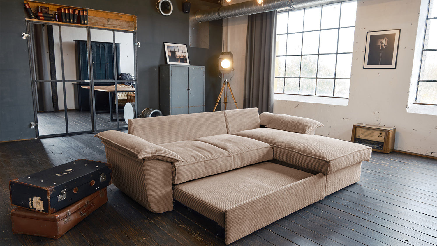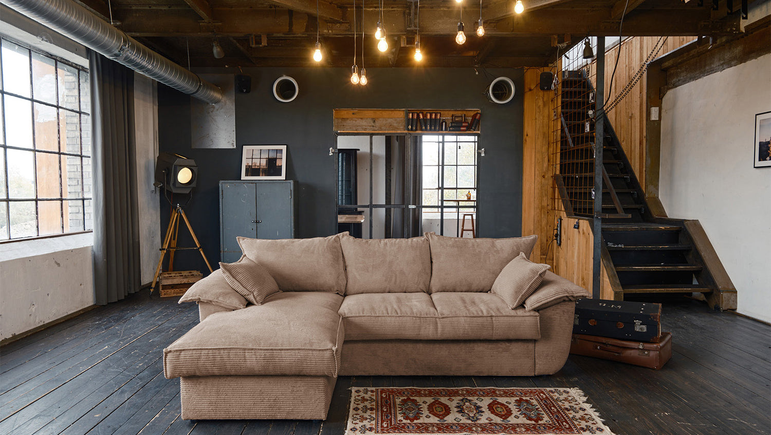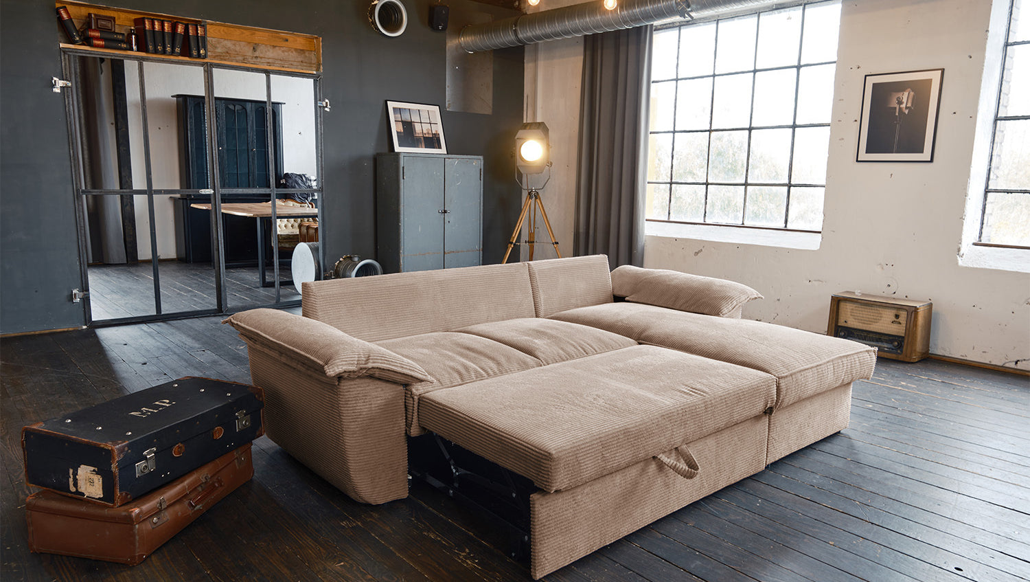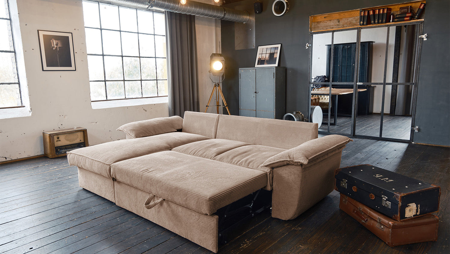 El sofá KAWOLA DAMETO es el nuevo todoterreno de nuestra gama. Con su moderno revestimiento de tela de pana, no sólo atrae todas las miradas, sino que su acolchado agradablemente suave también garantiza la máxima comodidad de asiento. Pero, sobre todo, convence por sus múltiples funciones adicionales. El sofá esquinero puede transformarse en un cómodo sofá cama en unos pocos pasos: basta con tirar de la parte inferior del sofá de 2 plazas hacia delante, plegarla hacia arriba y ¡listo! Pero eso no es todo: el sillón largo dispone de un generoso espacio de almacenamiento que puede abrirse sin esfuerzo abatiendo el asiento. El sillón largo también puede colocarse a ambos lados, lo que le ofrece la máxima flexibilidad para el diseño de su salón. Tanto a la izquierda como a la derecha, podrá adaptar fácilmente el sofá a su espacio. Cómodo, elegante, versátil y práctico, el sofá DAMETO se convertirá en la nueva estrella de su salón.