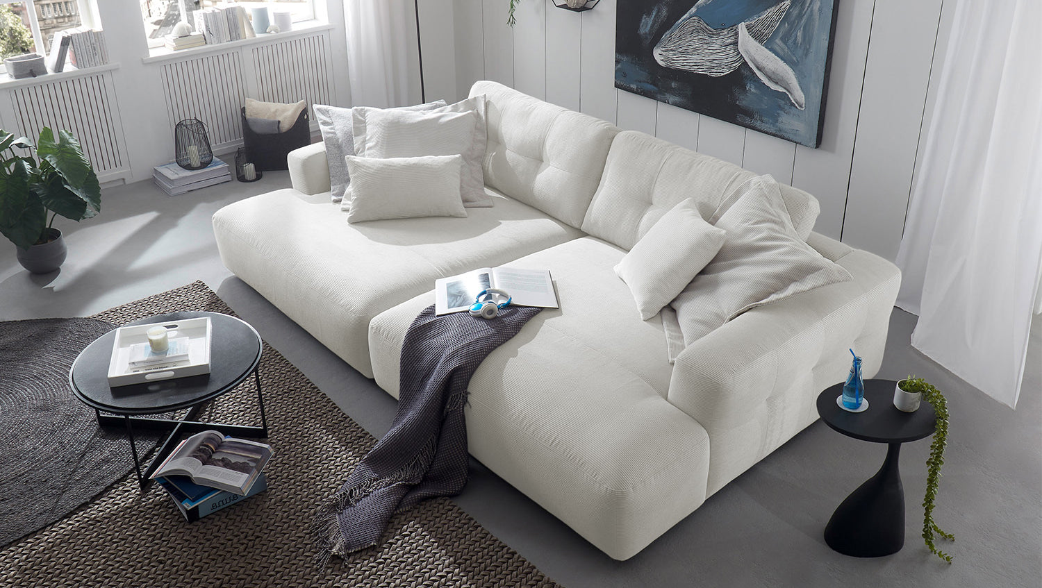 KAWOLA Sofá extra ancho MIKA pana fina blanco
