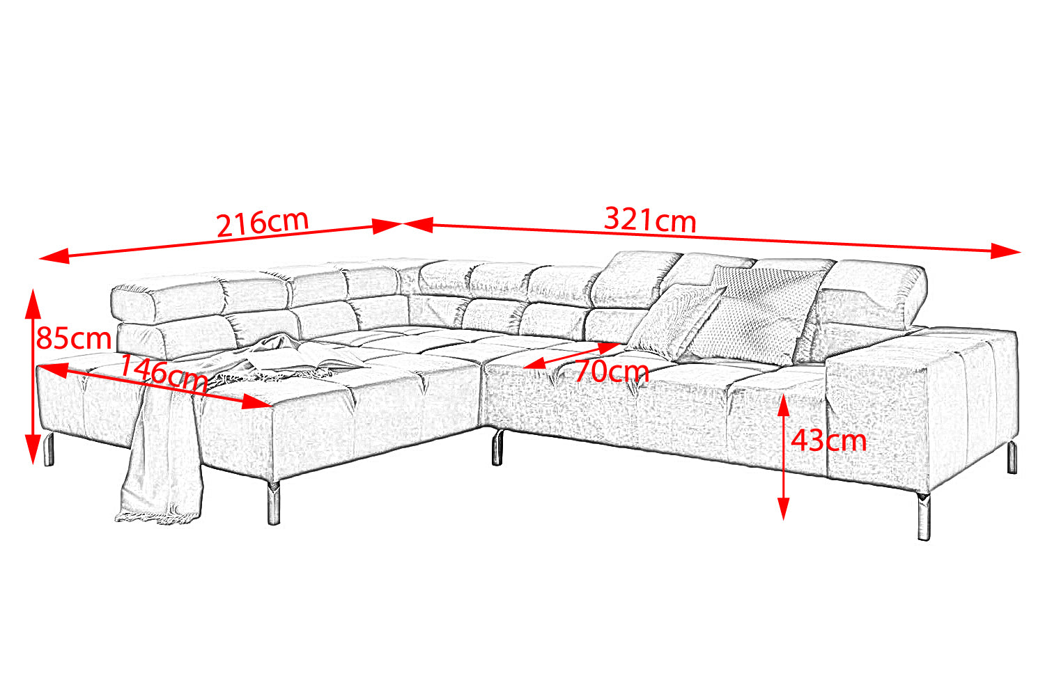 • Altura con cabecero plegado: 85 cm / profundidad del asiento sin extensión: 70 cm