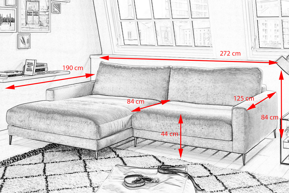 El sofá esquinero KAWOLA CARA combina el diseño clásico con la practicidad moderna y se integra a la perfección en cualquier interior. Sus formas suaves y el moderno revestimiento de tela Pana confieren al sofá una elegancia atemporal. La tapicería se amolda a la forma del cuerpo; las impresiones del asiento y las ondulaciones de la tapicería son típicas del producto. El asiento consta de una base de muelles con muelles ondulados de acero de elasticidad permanente y una funda superior, así como cojines de asiento sueltos de espuma de poliuretano. El asiento y el respaldo están tapizados con un relleno de alta calidad que contiene una mezcla de plumas. Para evitar que el material de relleno se comprima, los Cojines respaldo deben sacudirse después de su uso. Sea cual sea la ocasión, en el sofá CARA todos encontrarán un lugar para relajarse.