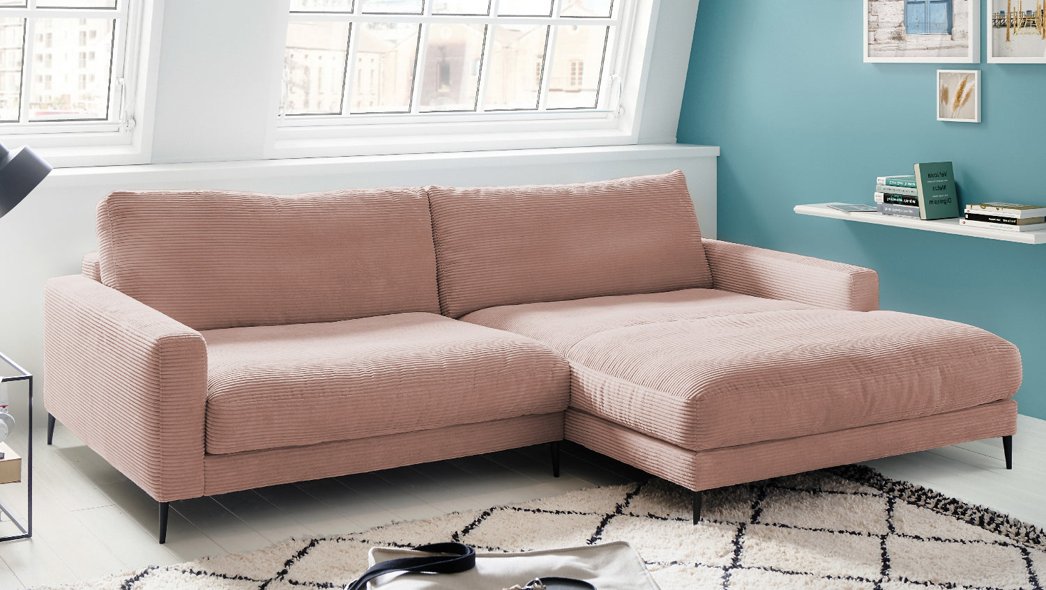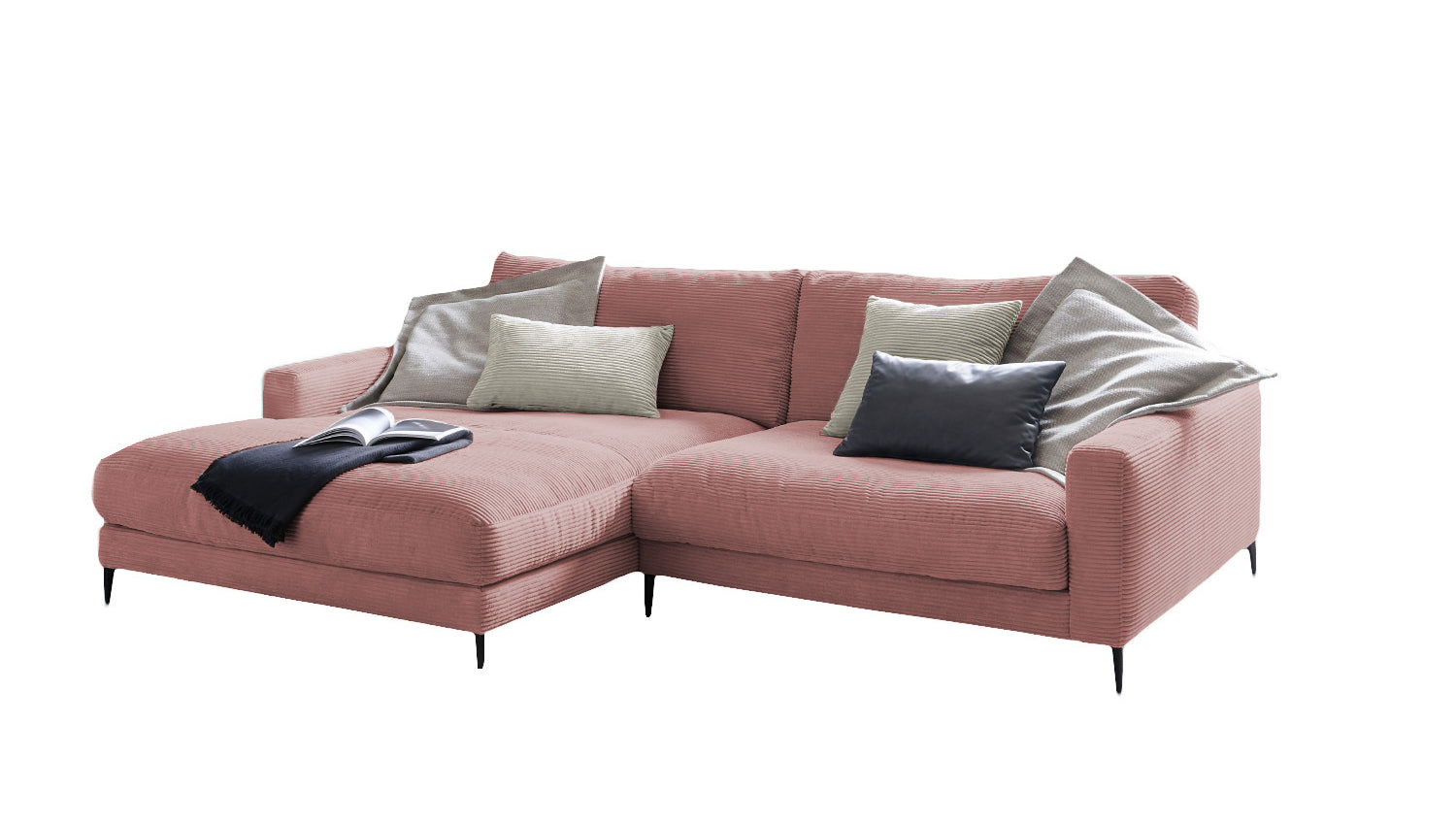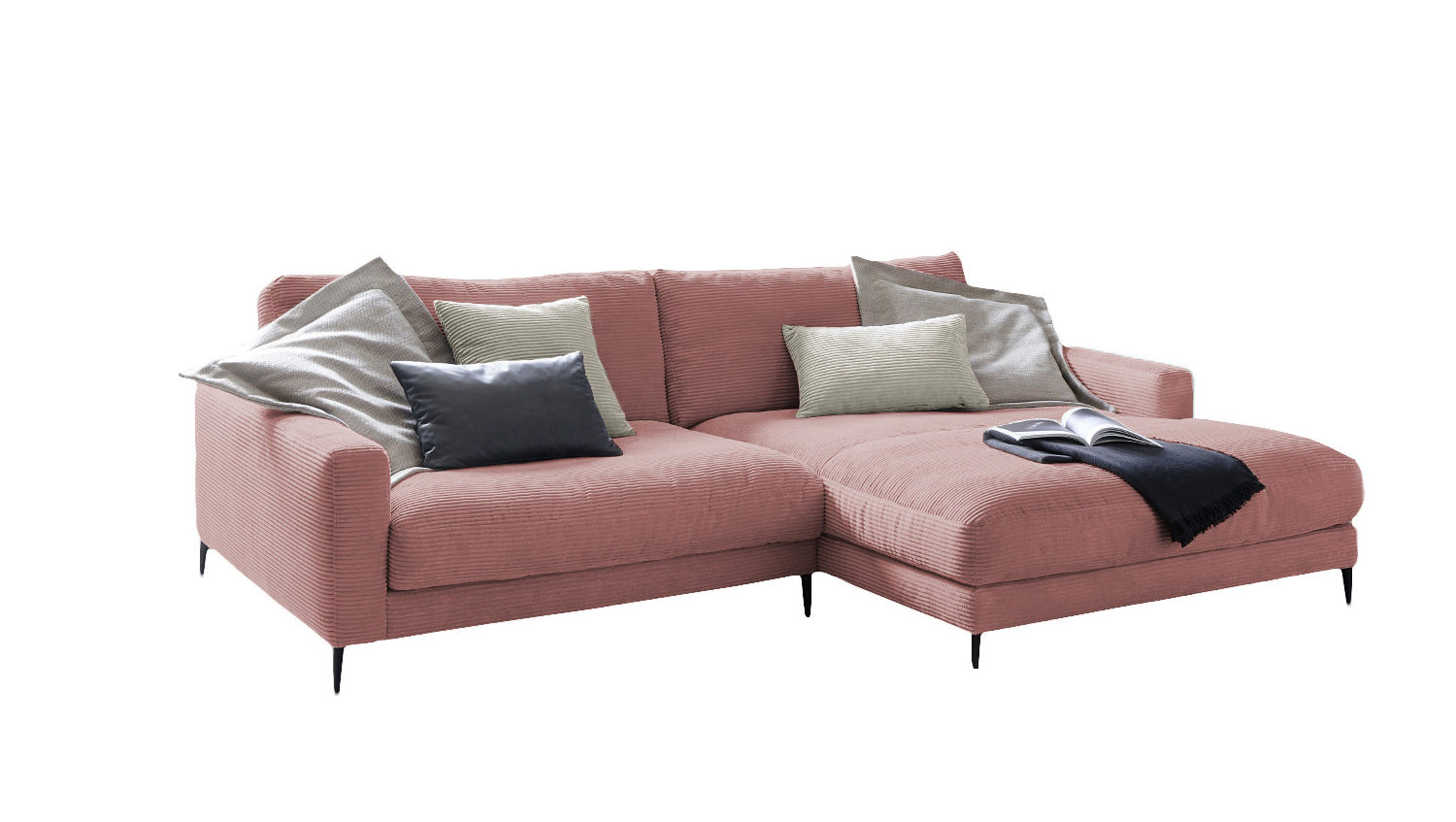 KAWOLA sofá esquinero CARA sofá pana rosa