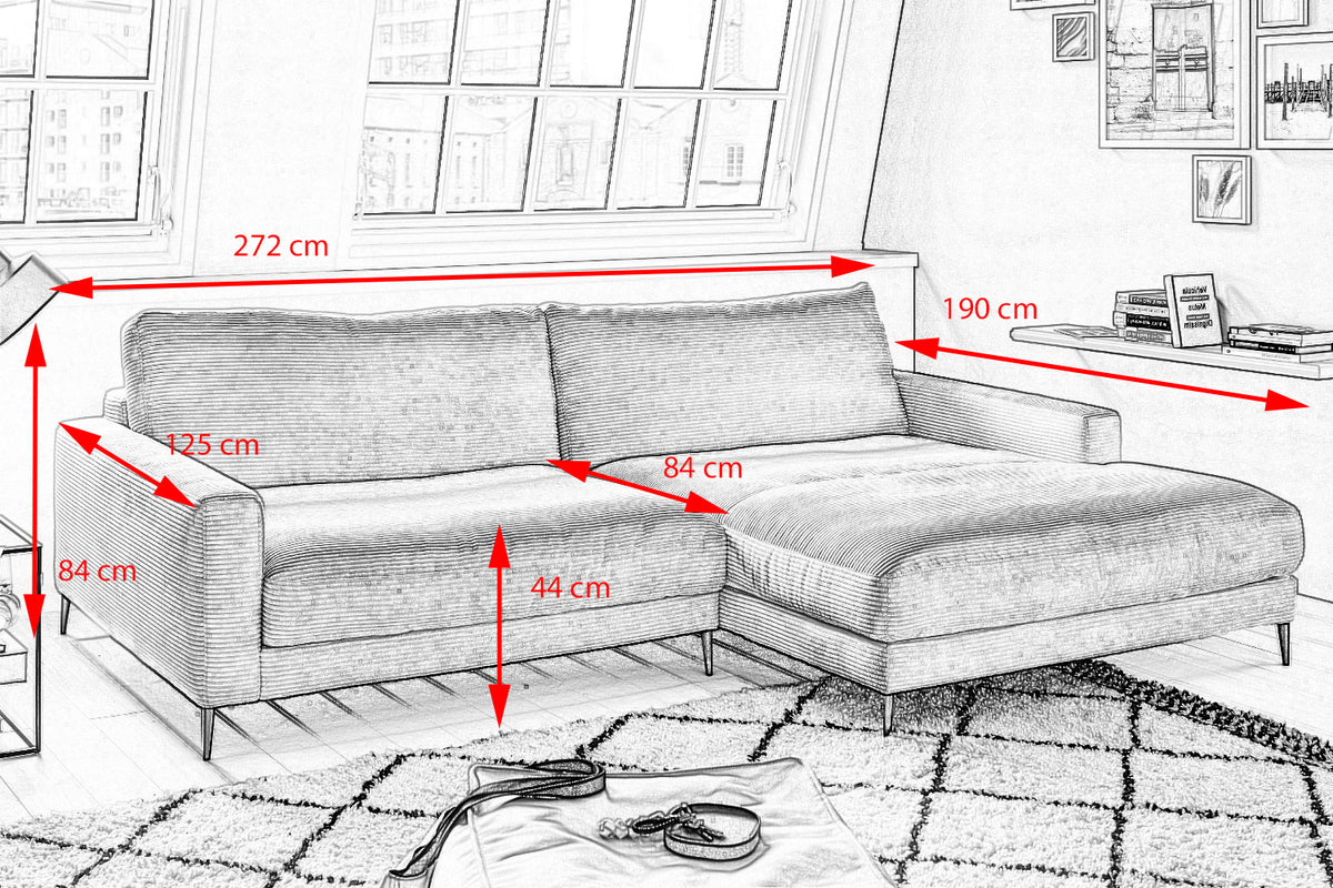 El sofá esquinero KAWOLA CARA combina el diseño clásico con la practicidad moderna y se integra a la perfección en cualquier interior. Sus formas suaves y el moderno revestimiento de tela Pana confieren al sofá una elegancia atemporal. La tapicería se amolda a la forma del cuerpo; las impresiones del asiento y las ondulaciones de la tapicería son típicas del producto. El asiento consta de una base de muelles con muelles ondulados de acero de elasticidad permanente y una funda superior, así como cojines de asiento sueltos de espuma de poliuretano. El asiento y el respaldo están tapizados con un relleno de alta calidad que contiene una mezcla de plumas. Para evitar que el material de relleno se comprima, los Cojines respaldo deben sacudirse después de su uso. Sea cual sea la ocasión, en el sofá CARA todos encontrarán un lugar para relajarse.