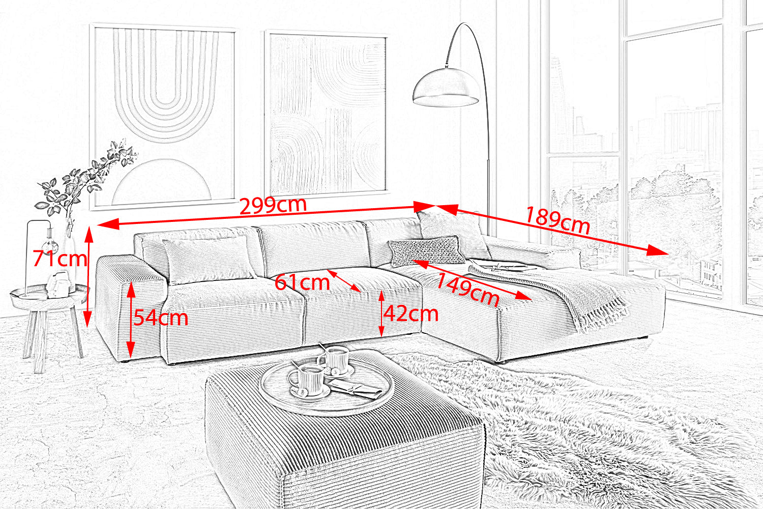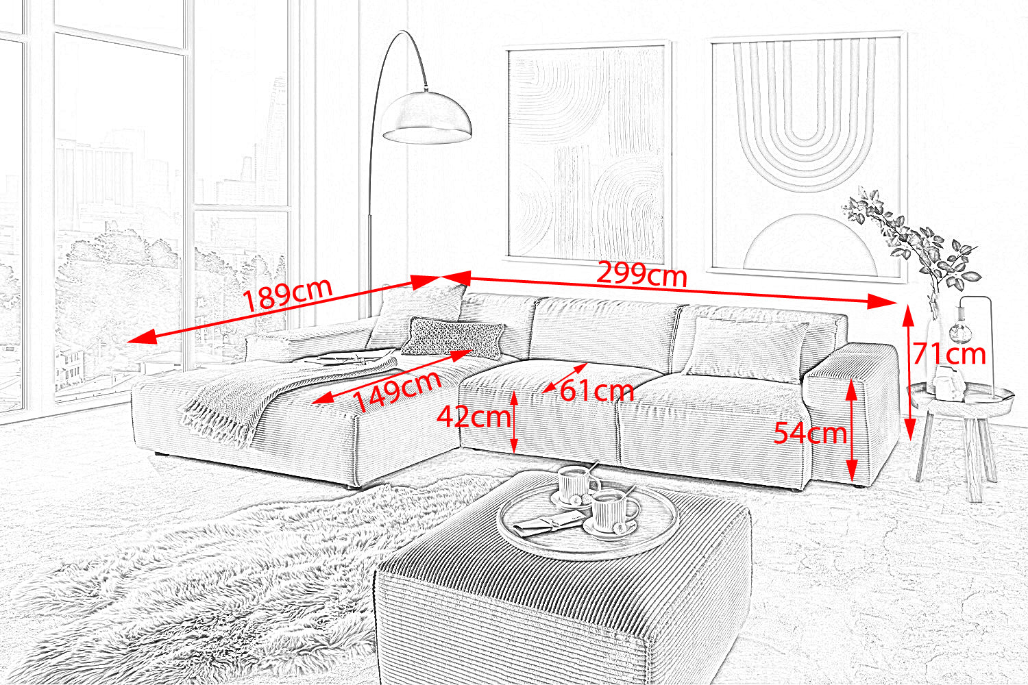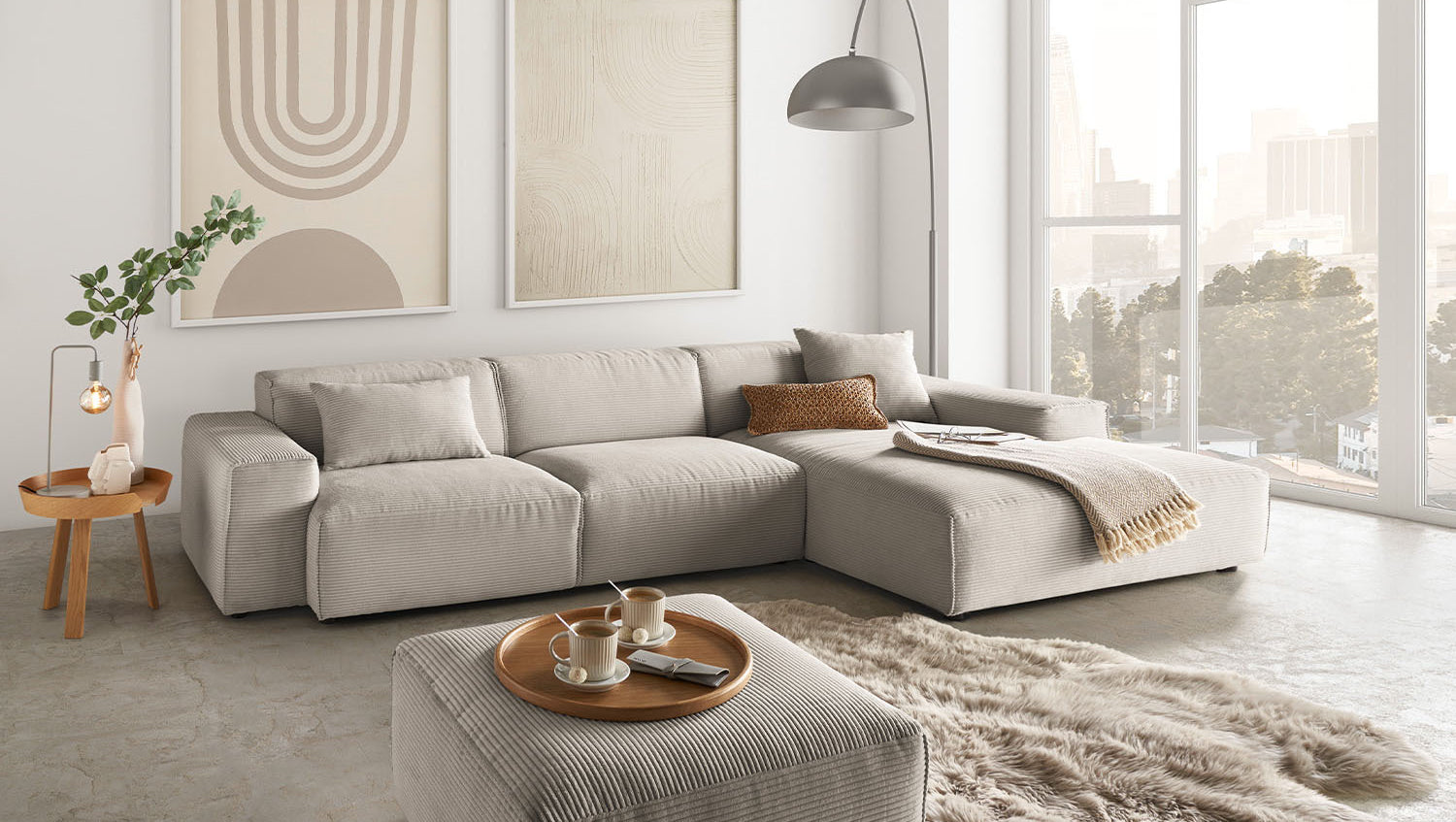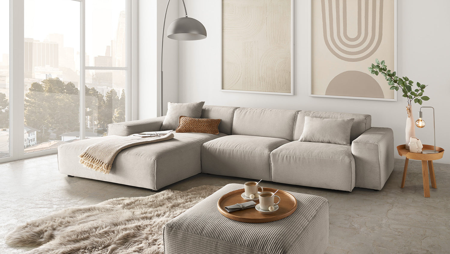 • MODERNO LOOK DE PANA - Estructura tridimensional de tacto suave, robusta y acogedora al mismo tiempo para un ambiente de vida con estilo