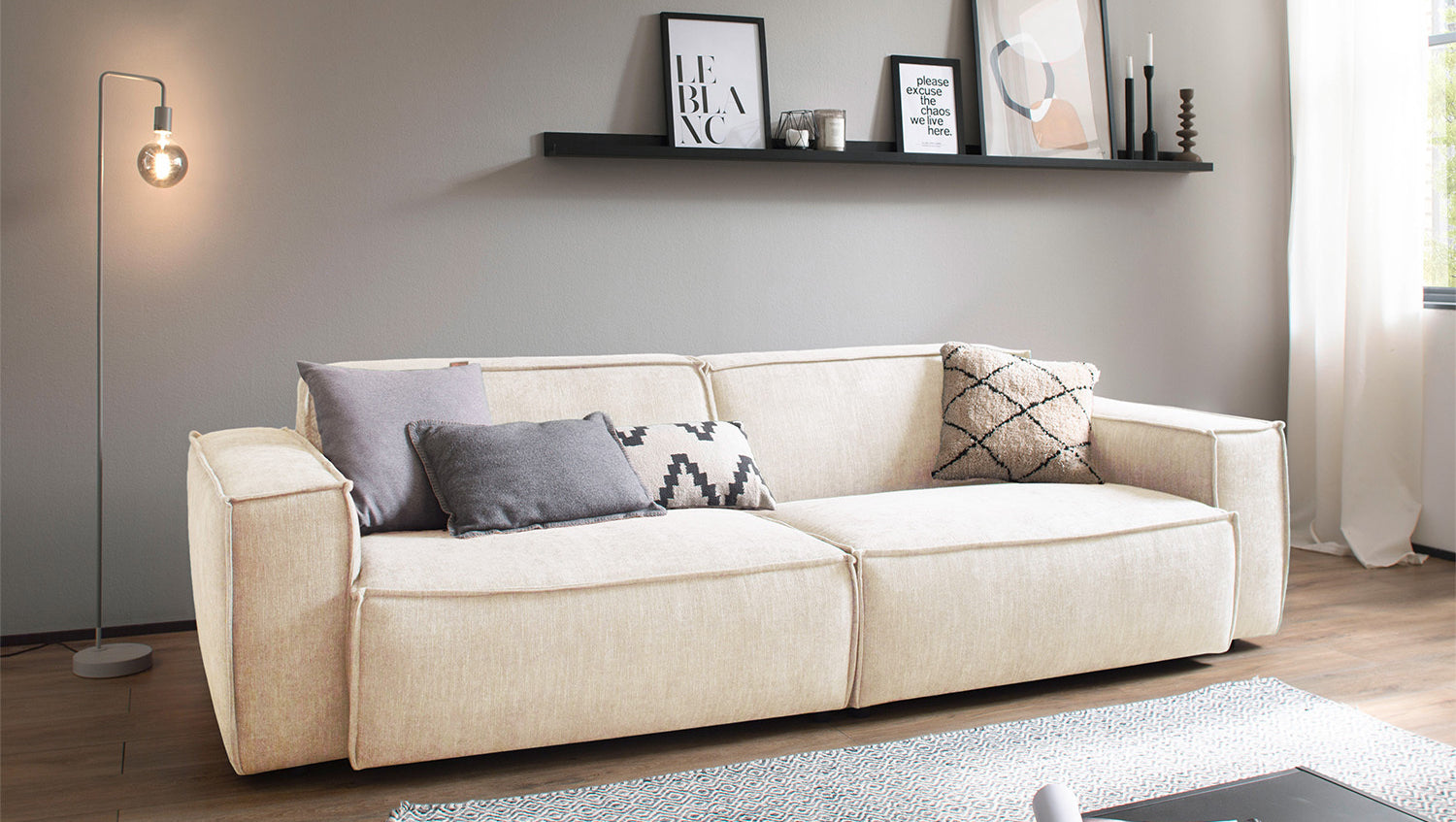 El grupo de asientos SAMU de KAWOLA está disponible aquí en una combinación de sofás de 2 y 3 plazas. Los sofás se caracterizan por su extraordinaria comodidad de asiento, que procede de la estructura extremadamente suave y desenfadada de la tapicería e invita a quedarse y relajarse. La tapicería se adapta a la forma del cuerpo; las impresiones del asiento y las ondulaciones de las fundas son típicas del producto. La forma moderna y urbana confiere a los sofás su aspecto inconfundible y ofrece espacio suficiente para pasar veladas acogedoras. Con su diseño atemporal, encajan a la perfección en cualquier ambiente y también destacan de pie en la habitación. Si quiere dar un toque extraordinario a su salón, el grupo de asientos SAMU es sin duda la elección adecuada.