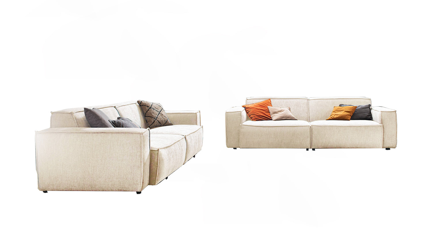 KAWOLA Grupo de asientos SAMU 3 plazas 2 plazas tejido chenilla crema