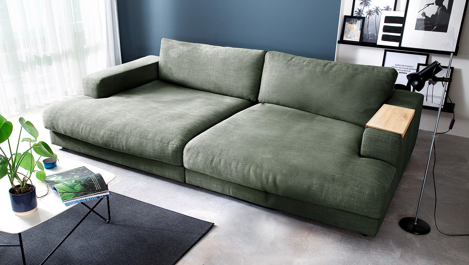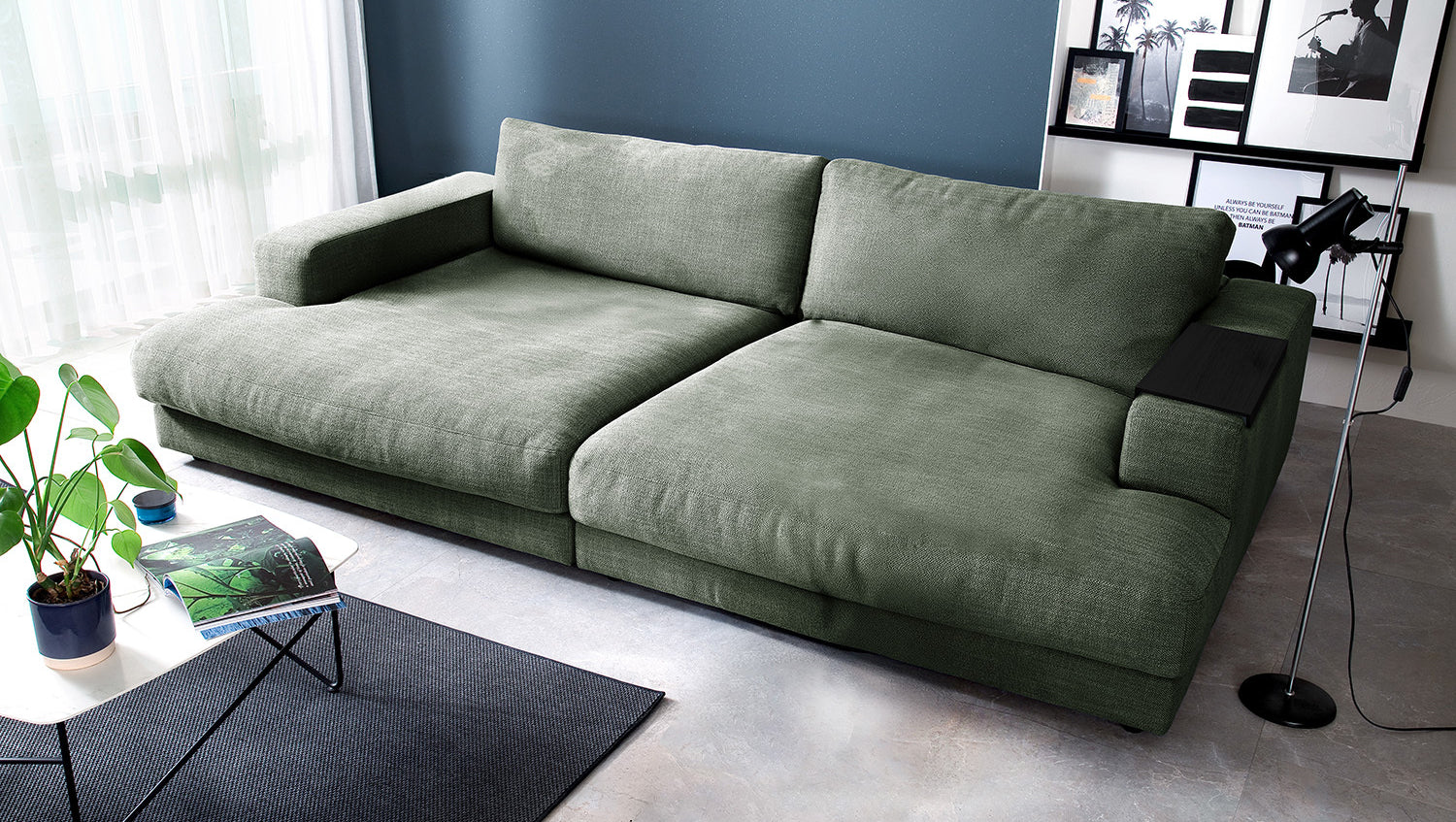 El Sofá extra ancho MADELINE de KAWOLA impresiona por su extraordinaria comodidad de asiento, que se consigue gracias a su tapizado extremadamente desenfadado y que invita a quedarse y relajarse. Sus inusuales dimensiones y su forma moderna y urbana confieren al sofá un aspecto inconfundible y ofrecen mucho espacio para pasar veladas acogedoras. Con su diseño atemporal, se integra a la perfección en cualquier ambiente y, además, destaca en cualquier rincón de la habitación. Si quiere dar a su salón un toque extraordinario, el Sofá extra ancho MADELINE es sin duda la elección correcta.