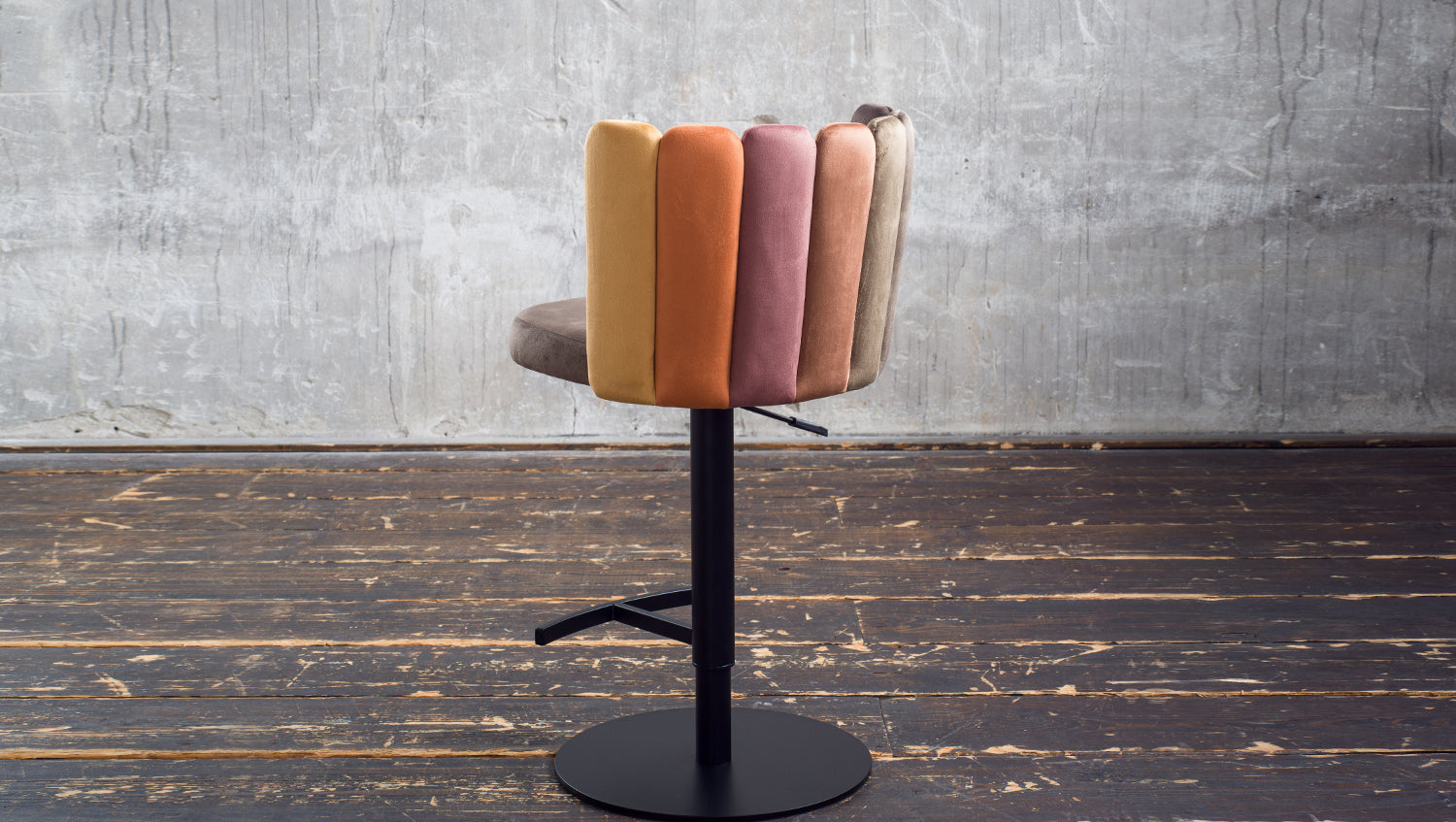 El taburete de bar JADA de KAWOLA aúna un agradable confort de asiento y un diseño moderno. Aquí podrá sentarse cómodamente y disfrutar de una bebida con estilo, como en su bar favorito. La altura del taburete de bar es regulable: de 85 cm a 109 cm. Esto le permite adaptar el taburete a sus necesidades individuales, con una altura de asiento variable de hasta 81 cm. Con su función giratoria de 360°, también ofrece la máxima flexibilidad y libertad de movimiento. El tejido de la funda de terciopelo tiene un acabado de muy alta calidad y el elaborado diseño del respaldo en distintos colores confiere a la silla un aspecto especial. Con su elegante diseño y sus prácticas funciones, el taburete de bar JADA aporta un auténtico ambiente de salón a su hogar.