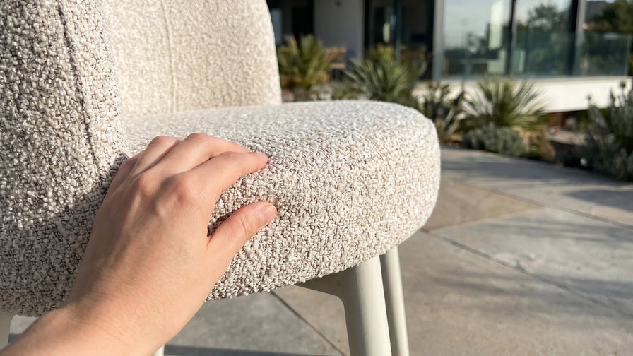 Muy fácil de mantener. La suciedad del día a día se elimina rápidamente con agua o un paño húmedo, sin necesidad de cuidados especiales. Para manchas más resistentes, el tejido permite una limpieza más profunda sin perder su aspecto ni sus propiedades. Esto hace que SOLENZO™ sea una opción práctica y cómoda para el uso diario, tanto en interior como en exterior.