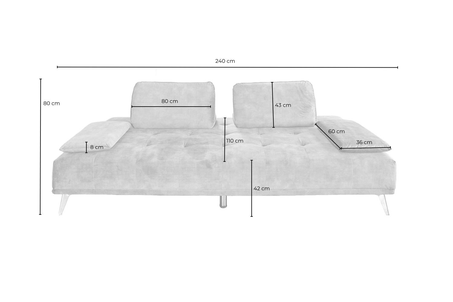 • ÁREA GRANDE - La superficie de 240x110 cm ofrece mucho espacio para relajarse y dormir