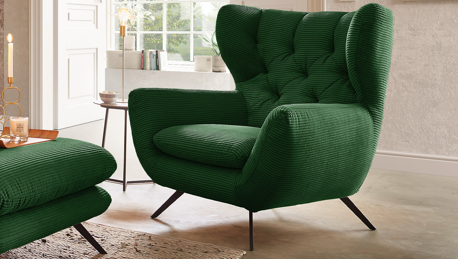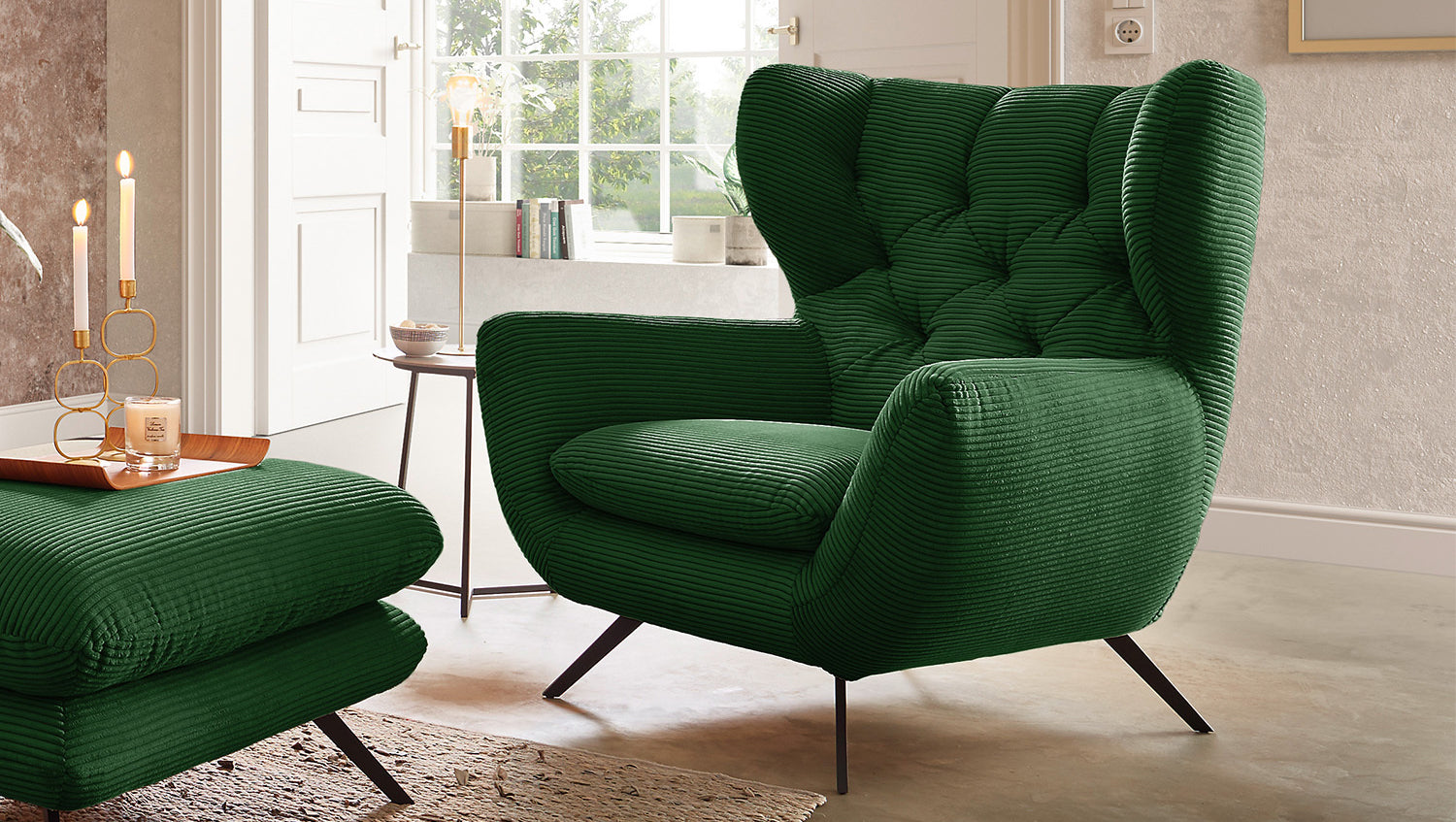 El sillón CHARME de KAWOLA es un sillón muy especial y pone nuevos acentos en el salón como auténtica pieza de diseño. El estilo del sillón CHARME recuerda a los años 60: el respaldo está cosido de forma elaborada sin botones; el respaldo está ligeramente curvado hacia delante en ambos lados y recuerda la forma de un sillón de orejas; los pies de metal con recubrimiento de polvo están ligeramente acampanados. A juego con la forma inusual del sillón CHARME, se ha optado por una funda de pana de aspecto ligeramente aterciopelado. El tapizado del sillón CHARME de KAWOLA es de espuma PUR y convence por su suave y desenfadado confort de asiento. Ni que decir tiene que el sillón está completamente revestido con la tela de pana, por lo que este estupendo sillón también puede colocarse en cualquier lugar de la habitación. Si no busca simplemente un sillón, sino un punto culminante muy especial, ¡el sillón KAWOLA CHARME es la elección perfecta!