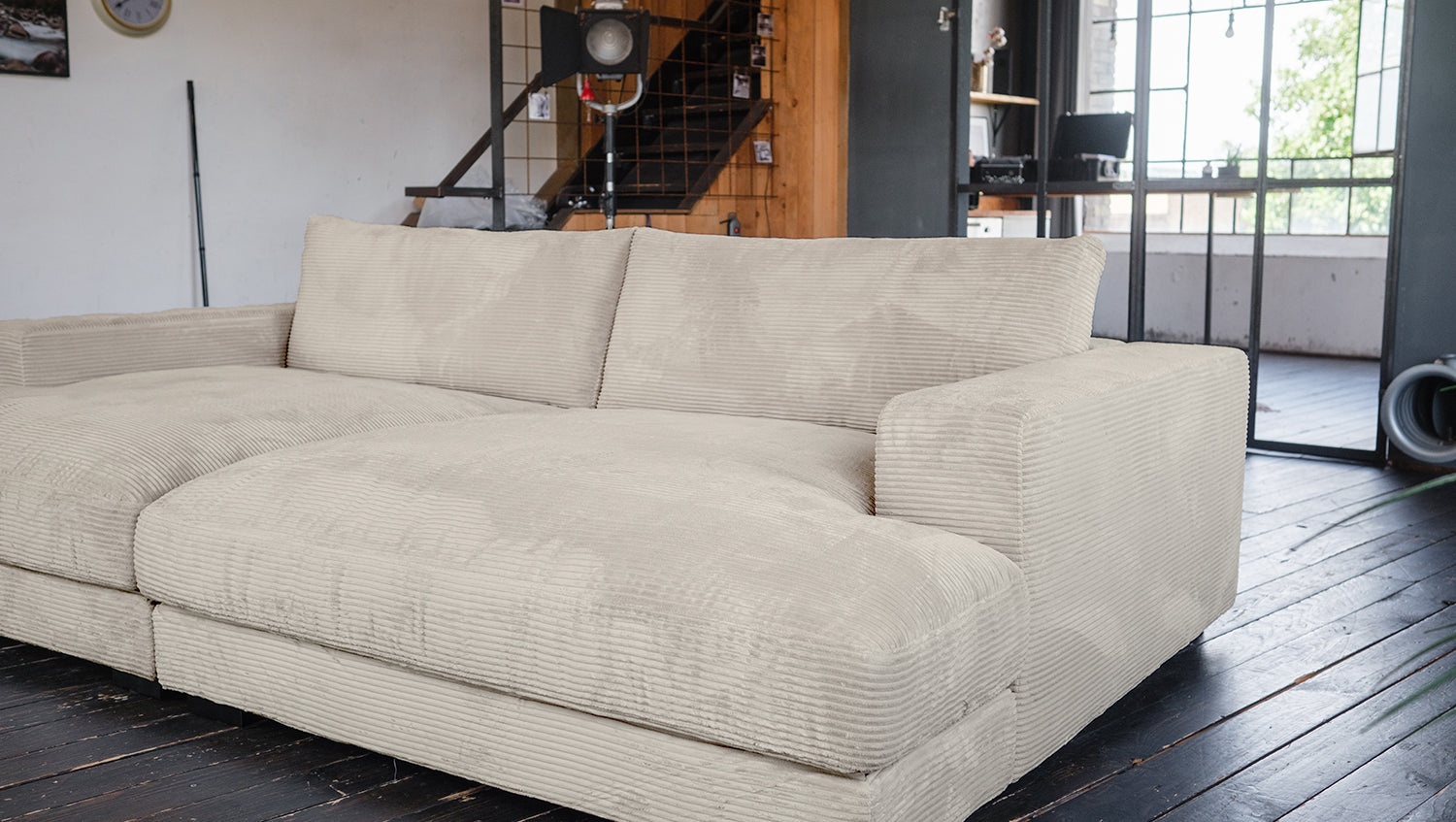 Se trata de 2a oportunidad, que se ofrece a un precio reducido. Los defectos específicos de este artículo se documentan con precisión en las imágenes del producto (al final de la galería de imágenes) y en los detalles del producto. Tenga en cuenta que estos artículos proceden de devoluciones de clientes y, por tanto, ya no están disponibles en su embalaje original. No se puede descartar la presencia de otros fallos o defectos no detectados. El acogedor Sofá extra ancho MADELINE transforma su hogar en un oasis de bienestar. Con su generosa superficie, el sofá XXL de diseño moderno ofrece mucho espacio para relajarse con la familia y los amigos. La suave funda de tela de pana garantiza una sensación acogedora y le da al sofá de pana un toque elegante. El desenfadado tapizado del Sofá extra ancho Pana se adapta perfectamente a la forma de su cuerpo y ofrece una comodidad extraordinaria. Disfrute de tardes relajantes en este moderno sofá. El Sofá extra ancho no sólo es cómodo, sino que también llama la atención en cualquier salón. Su sencilla elegancia y su acabado de alta calidad lo convierten en un compañero duradero. Ya sea como punto de encuentro para reuniones sociales o como refugio acogedor para relajarse, este sofá XXL satisface todos sus deseos. El sofá de pana se integra armoniosamente en diversos estilos de decoración y aporta un toque especial a cualquier habitación. Este moderno sofá es la elección perfecta para cualquiera que valore la comodidad, el estilo y la calidad. Regálese una experiencia vital especial con este excepcional mueble.