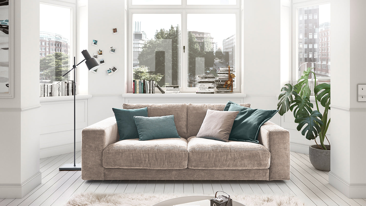 El sofá de 2 plazas MADELINE de KAWOLA impresiona por su extraordinaria comodidad de asiento, que se debe a la tapicería extremadamente desenfadada e invita a quedarse y relajarse. Su forma moderna y urbana confiere al sofá un aspecto inconfundible y ofrece espacio suficiente para pasar veladas acogedoras. Con su diseño atemporal, se integra a la perfección en cualquier ambiente y también destaca de pie en la habitación. Si quiere dar un toque original a su salón, el sofá MADELINE es sin duda la elección perfecta.